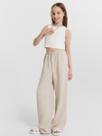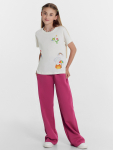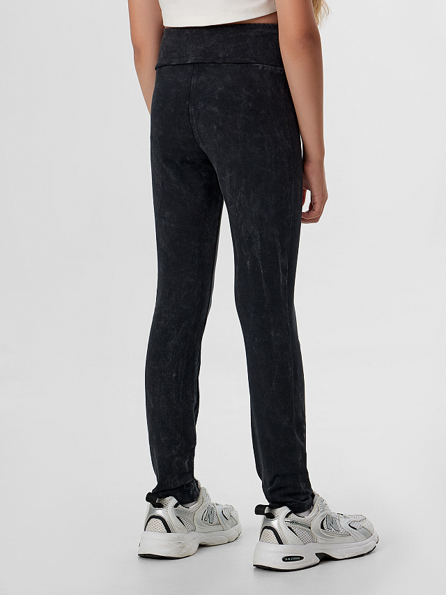 Леггинсы для девочек прилегающего силуэта. Пояс отрезной, широкий, с эластичной тесьмой внутри. Посадка высокая.