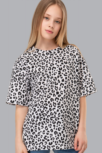 Идеальная футболка оверсайз найдена! С..показатьтильная леопардовая футболка для девочки – то, что нужно для создания запоминающегося образа. Модель выполнена из 100% хлопка, ткань кулирная гладь.