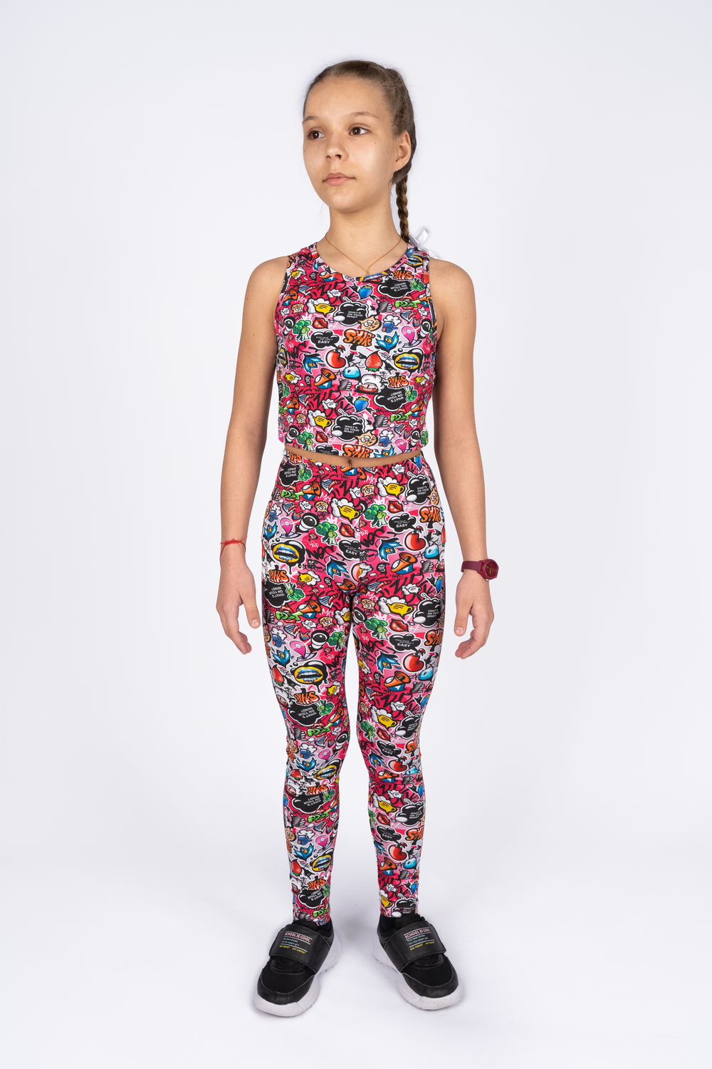 Красочные лосины для девочек из высококачественного хлопкового полотна. Яркие принты отлично подойдут для создания стильных повседневных образов маленьких модниц: на прогулку, в секцию, для дома, танцев и активных игр. Выполнены из натурального высококачественного хлопка с добавлением эластана, который придает дополнительный комфорт при носке и гарантирует сохранение формы изделия даже после многочисленных стирок. Пояс цельнокроеный с эластичной тесьмой, который не сдавливает живот и не мешает движению.
