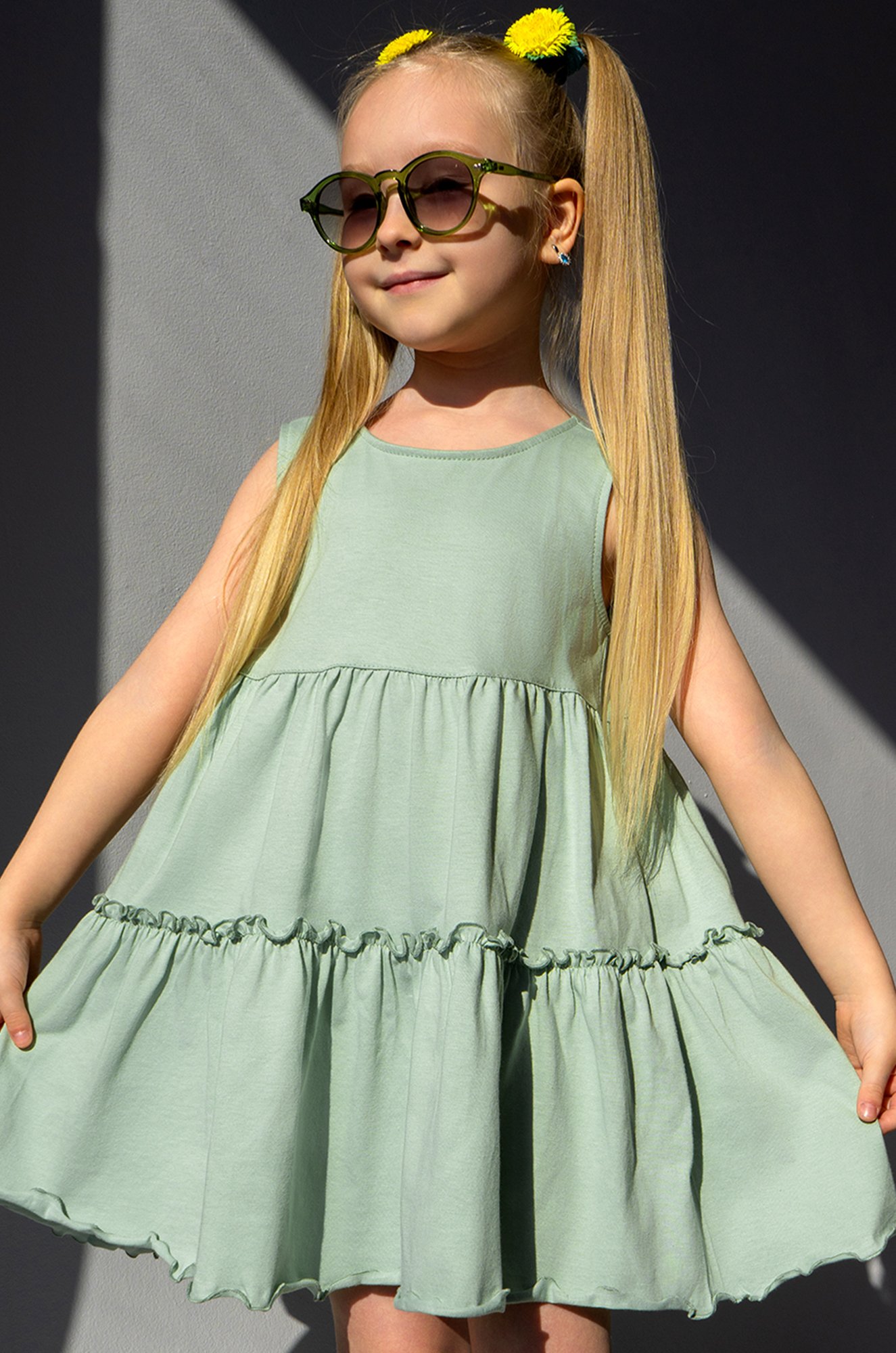 Детское платье для девочек выполнено из натурального 100% хлопка и представлено. Свободная модель, застежка на пуговицу по спинке – каждая деталь создана для комфорта ребенка. Благодаря широкому волану и сборкам летнее платьице для детей поможет создать классный образ.