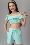 Костюм для девочки выполнен из нежнейшей ткани бамбук с высоким содержанием натурального хлопка – что может быть приятнее? Мягкий хлопок едва ощущается на теле. Только релакс и свобода!