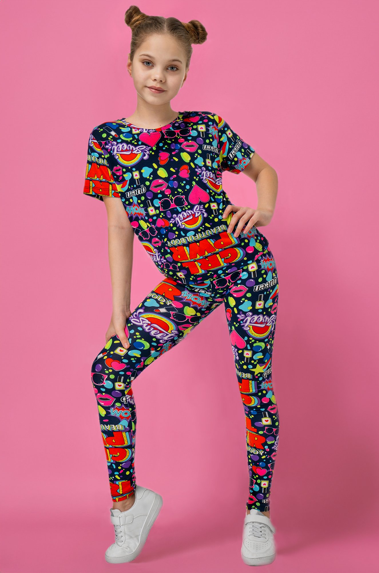 Хлопковый набор подходит для тренировок по гимнастике и танцам. Костюмчик с принтом станет отличным решением для физкультуры. Подростковый комплект с лосинами идеален для дома, отдыха и домашних дел.