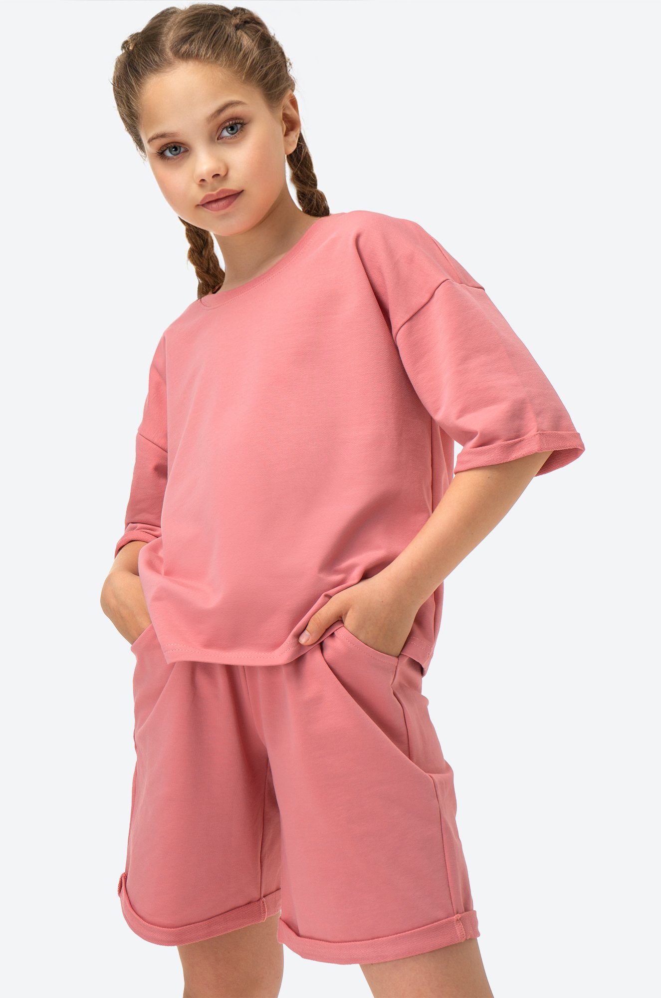 Детский костюм с шортами для девочек и девочек-подростков выполнен из хлопкового трикотажа высокого качества. Крой оверсайз, мягкая резинка, практичные карманы – каждая деталь делает летний костюм для детей невероятно удобным. Набор из футболки и шортиков представлен в розовом цвете.