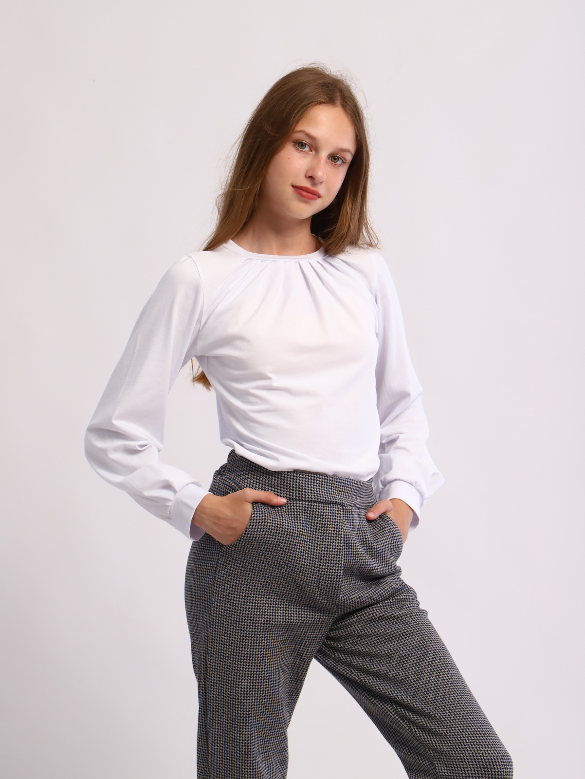 Блузка в школу для девушек и девочек подростков из трикотажного материала премиум класса. Базовый нарядный лонгслив с округлой горловиной с эффектной сборкой, рукава широкие пышные в манжетами. Детская трикотажная блуза отлично сочетаются подходит в качестве школьной одежды. Трикотажная кофточка может дополнять нарядный образ и быть частью повседневного комплекта одежды для школы. Лонгслив детский подростковый сшит из хлопкового трикотажа с добавлением лайкры. Форма для школы должна быть комфортной и удобной. Поэтому эта школьная рубашка сшита из натурального хлопкового трикотажа, дышащего и гигроскопичного. Деловой стиль лонгслив для девочки позволяет выглядеть ребенку изящно. Кофту для школы удобно и комфортно носить как базовую вещь школьной фермы. Школьная натуральная трикотажная блузка обеспечивает комфорт и удобство за счет натурального материала и проверенных лекал изделия. Кофта школьная может быть частью наряда на праздник и торжество в повседневной жизни и в школе на официальных мероприятиях. Новогодние подарки для детей, подарок на новый год.
