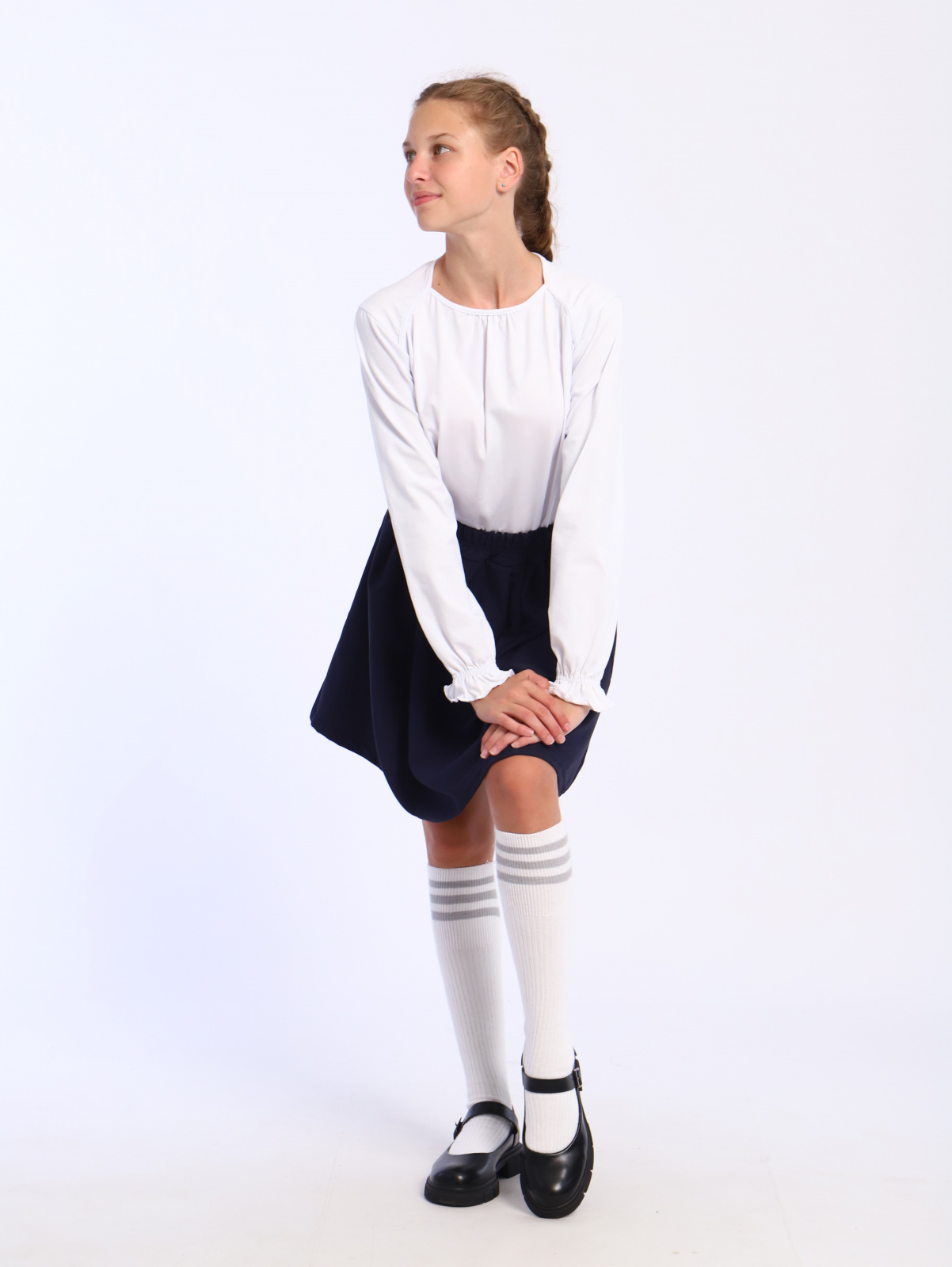 Блузка школьная сшита из хлопкового трикотажного полотна с лайкрой.