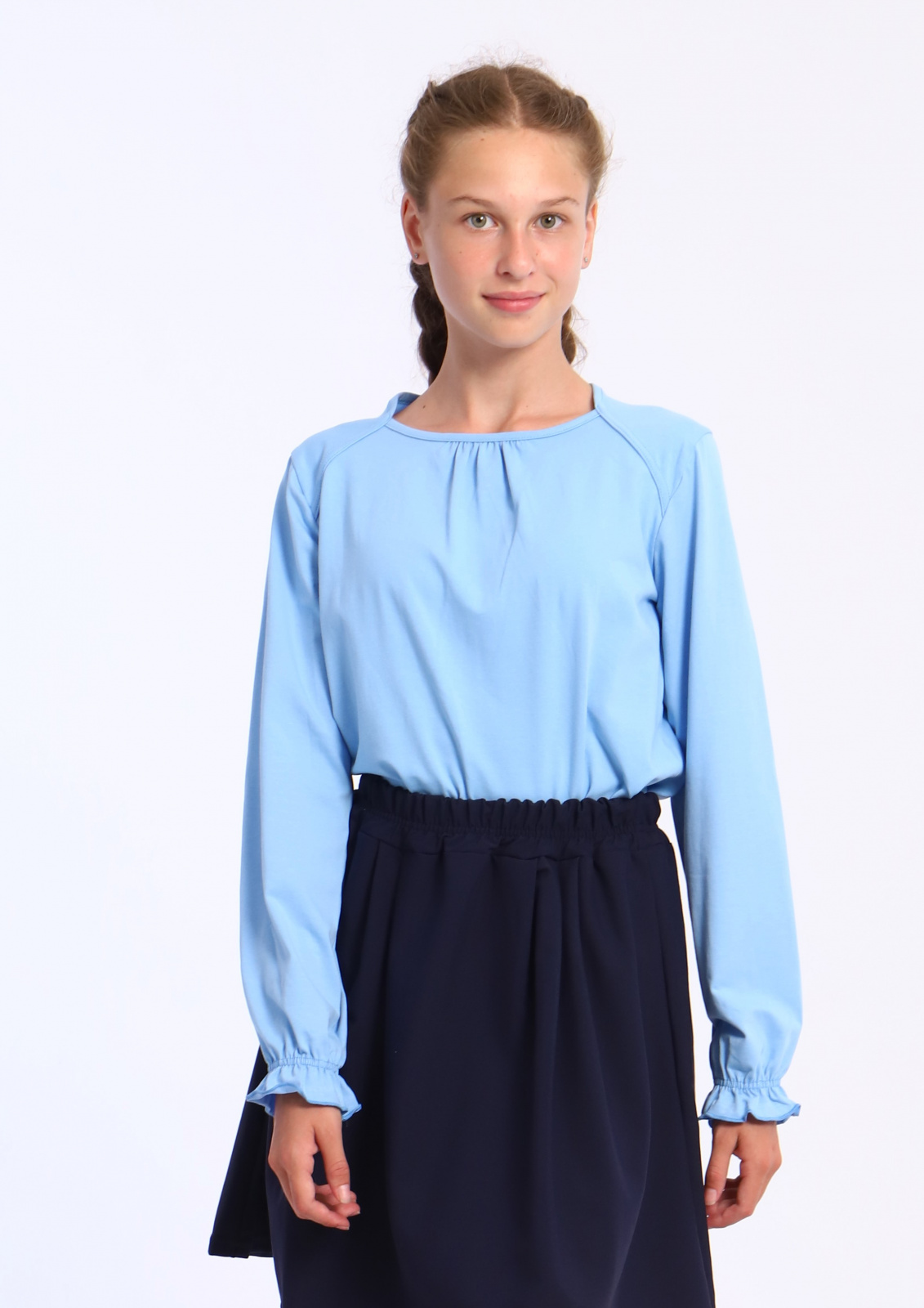Блузка школьная сшита из хлопкового трикотажного полотна с лайкрой.