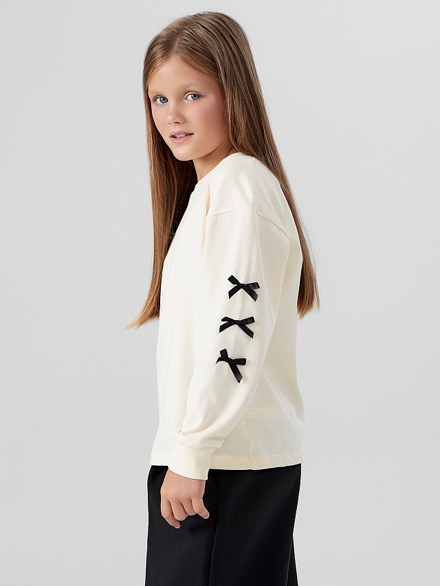 Лонгслив для девочек молочный с бантиками
