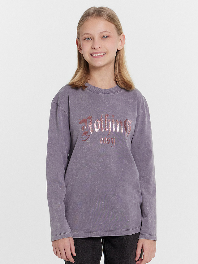 Лонгслив для девочек серый с обработкой эйсид