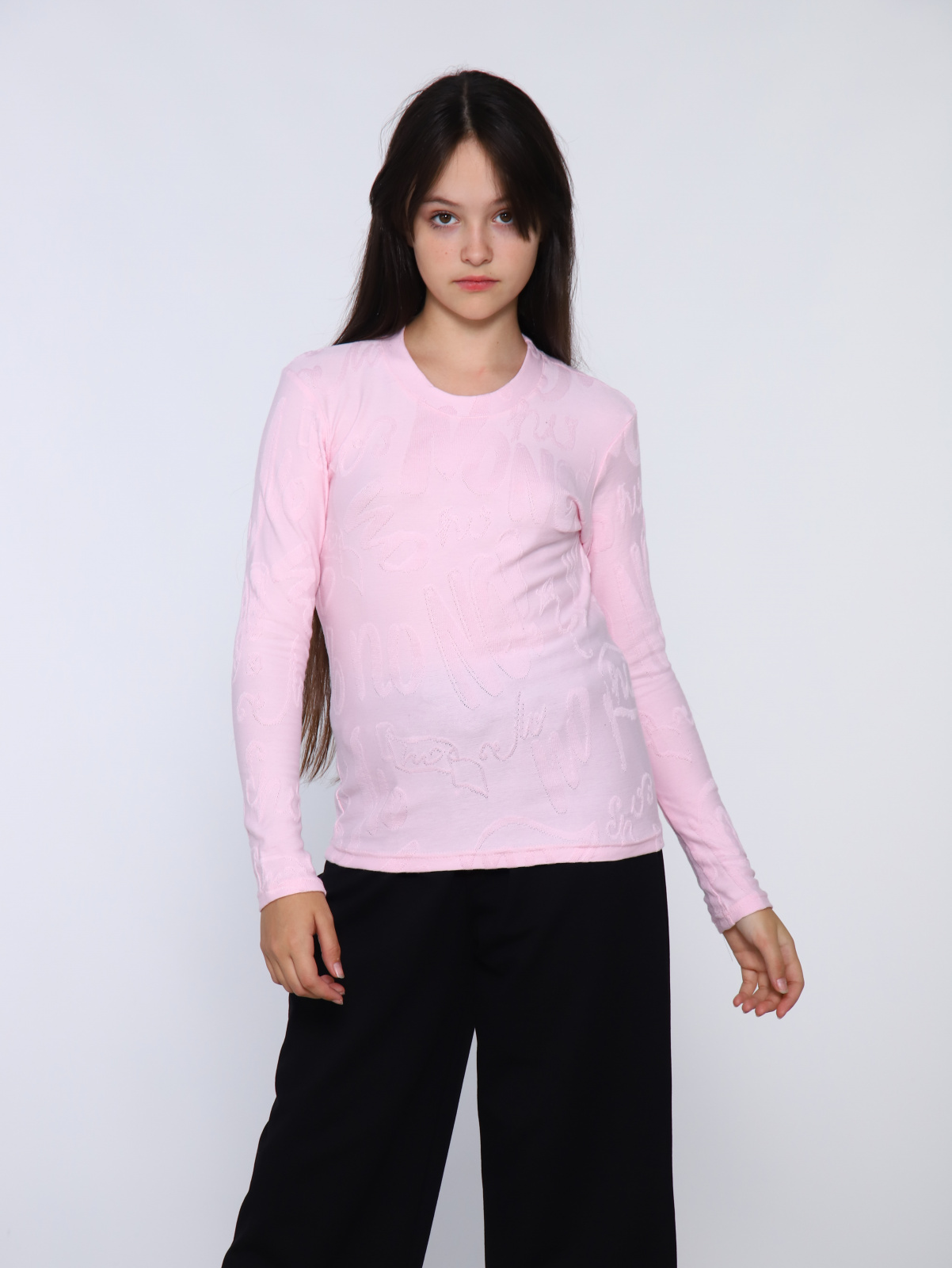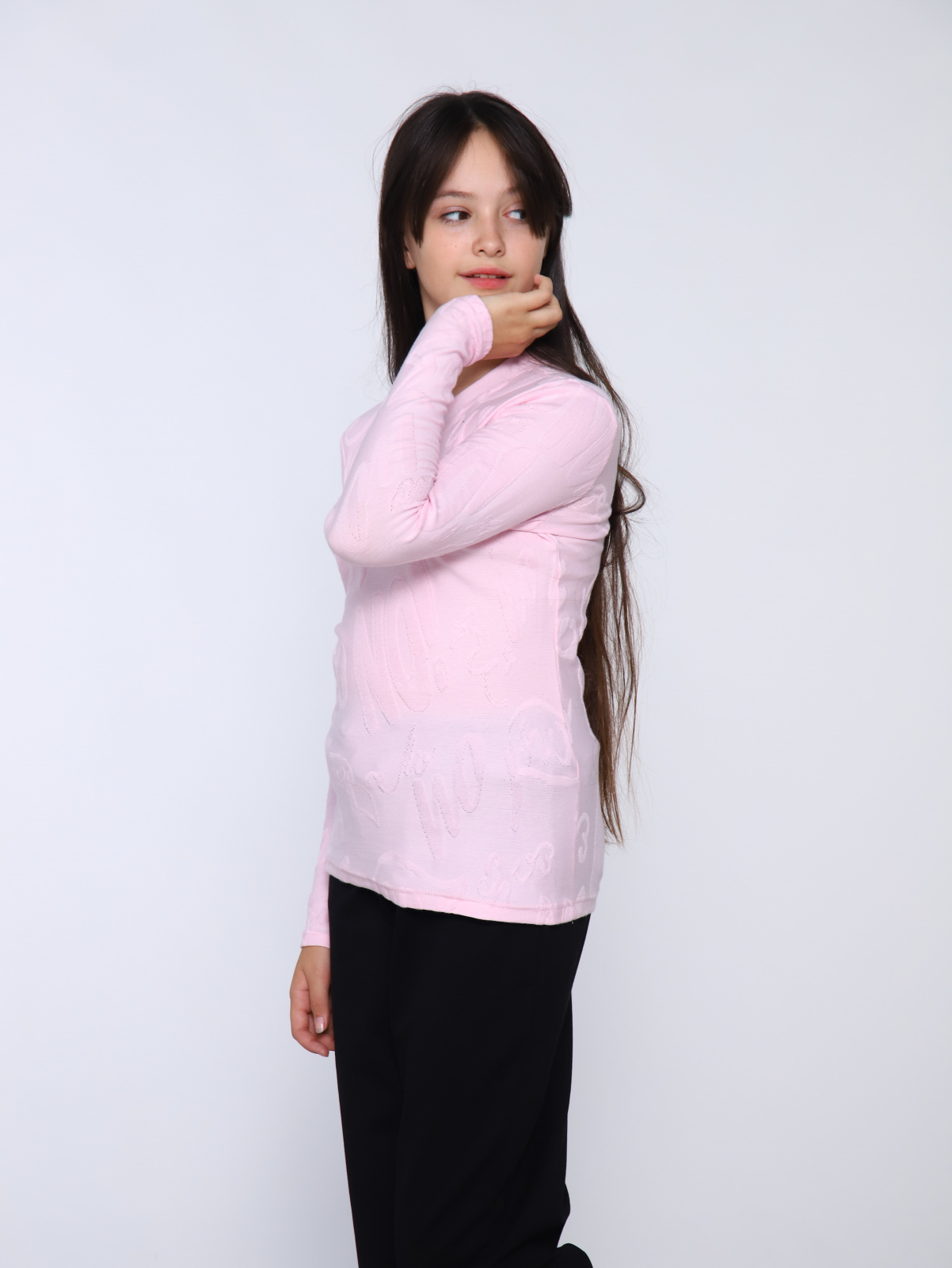 Детский джемпер с длинным рукавом и круглой горловиной. Посадка кофты на девочку прямого силуэта очень идеальная.