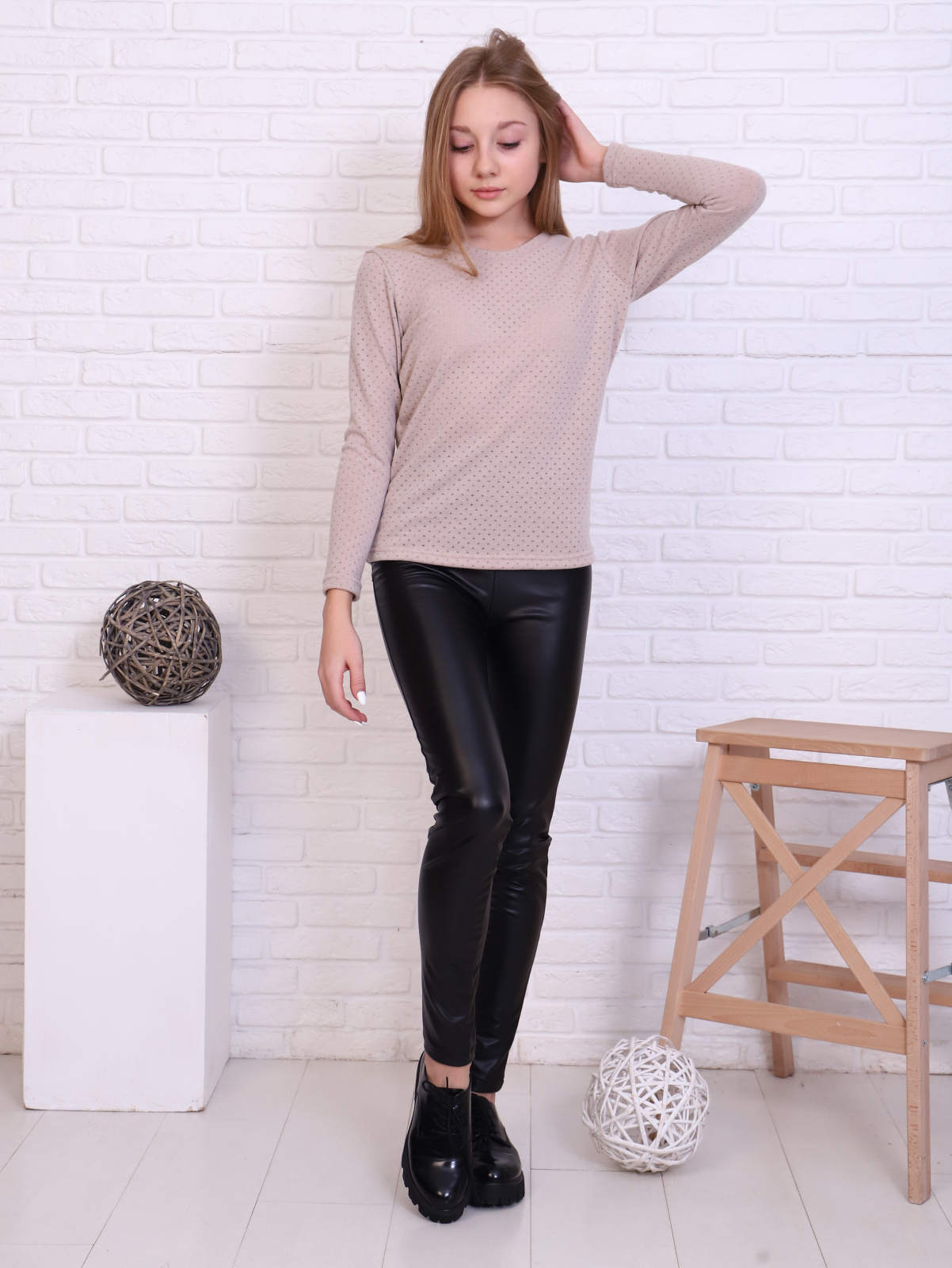 Кофточку отлично дополнят лосины на девочку, юбки и шорты для подростка, кюлоты - укороченные брючки, также классические брюки, кардиган, джемпер, школьный пиджак так же дополнит образ с этой блузкой.