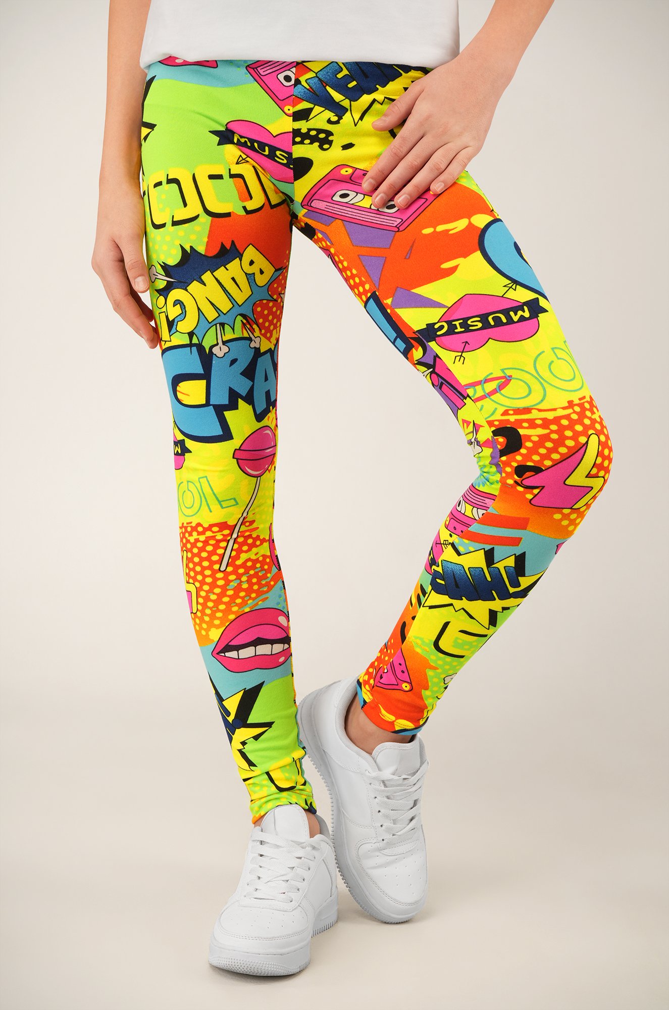 Детские лосины с ярким принтом — то, что нужно для активных будней! Облегающий крой, удобная высокая талия и мягкая резинка — отличные характеристики легинсов для девочки. Модель выполнена из приятной к телу трикотажной ткани бамбук.