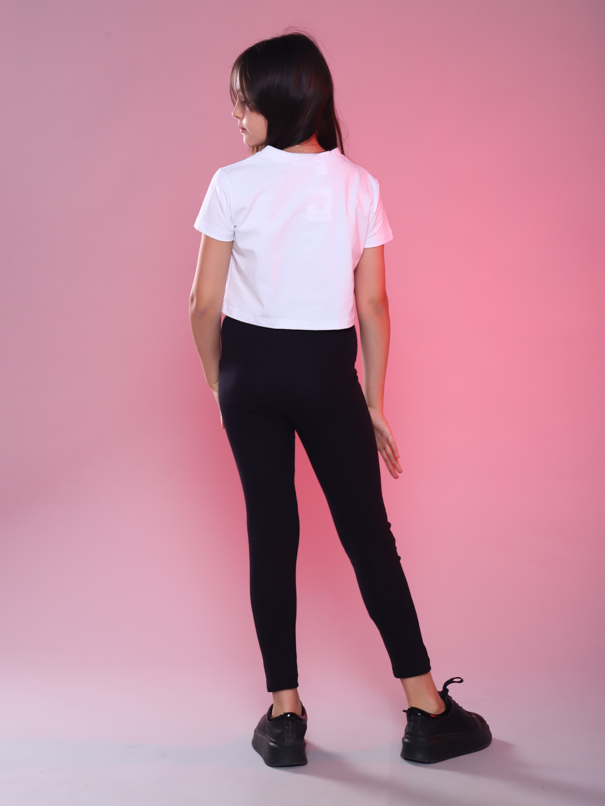 Детские штанишки сшиты из качественной хлопковой ткани с лайкрой, облегающего кроя с высокой талией и резинкой на поясе.