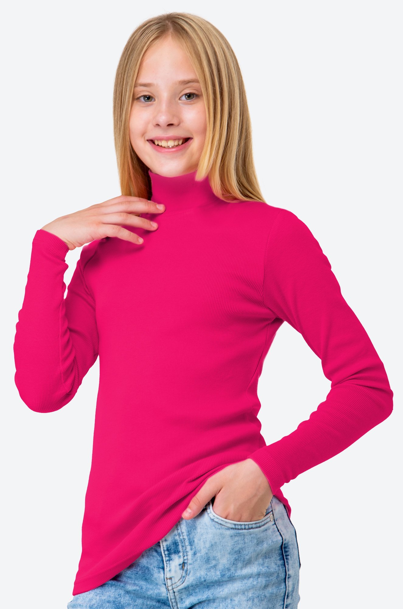 Однотонная розовая водолазка легко впишется в повседневный гардероб осенью и весной. Базовая водолазка малинового цвета хорошо сочетается с любым низом и подойдет для многослойных весенних и осенних образов.