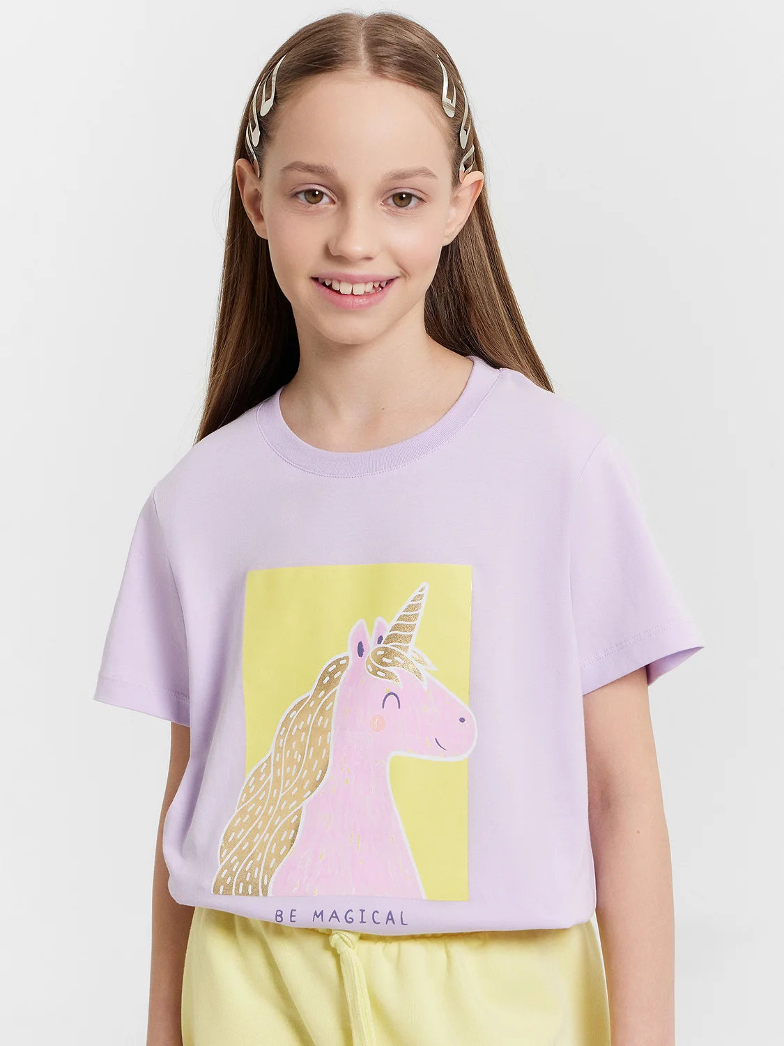 Футболка для девочек из высококачественного хлопка. Рукава - чуть выше локтя, линия плеча спущена. Горловина круглой формы из рибаны. Модель отличается стильным и лаконичным дизайном, идеально подходящим для девочек любого возраста. Круглый вырез горловины и прямой силуэт придают ей изящный и женственный вид, подчеркивая нежность и очарование юной модницы. Благодаря использованию натуральных дышащих материалов, эта футболка создает коже дышать, предотвращая перегрев и раздражения. Особая обработка гарантирует, что швы будут мягкими и не доставят дискомфорта при носке. Многообразие ярких, жизнерадостных расцветок, от пастельных нежных оттенков до насыщенных глубоких тонов, позволит вашей малышке выбрать футболку, идеально подходящую к ее индивидуальному стилю и настроению. Изящные принты и аппликации придают модели неповторимый шарм, делая ее настоящим украшением детского гардероба.