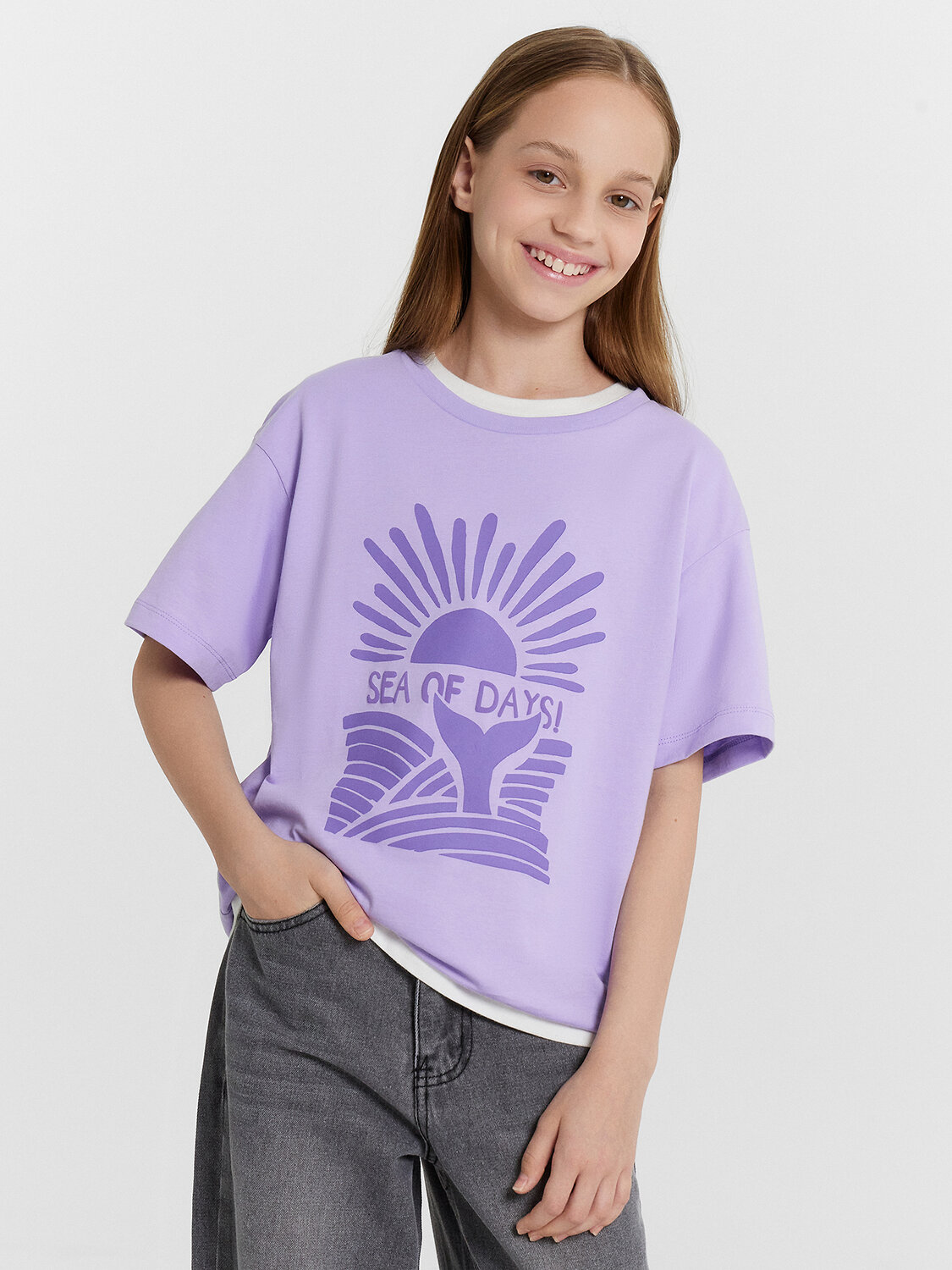 Эта стильная футболка для девочек идеально подходит для создания многослойных образов. Модель прямого кроя с короткими рукавами, спущенной линией плеча и круглой горловиной обеспечивает свободу движений и комфорт. Изделие выполнено из кулирки — мягкого трикотажного материала, который обладает гладкой поверхностью и природной воздухопроницаемостью. Этот материал прекрасно пропускает воздух, позволяя коже дышать, и обеспечивает высокий уровень комфорта, не стесняя движений. Кулирка также хорошо держит форму и сохраняет цвет даже после многочисленных стирок, что делает изделие долговечным. Такая футболка станет универсальным элементом гардероба, подходящим для любого сезона.