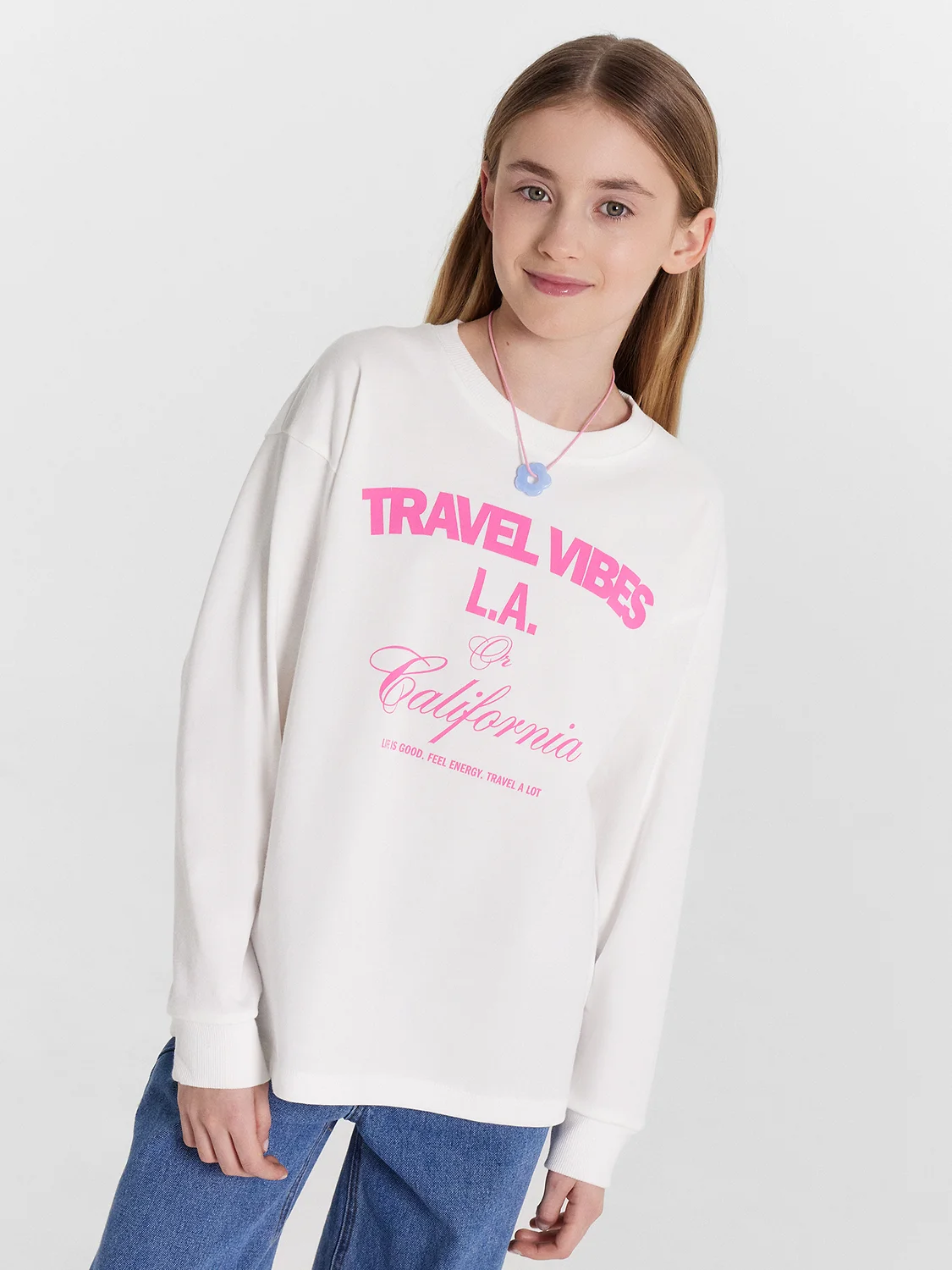 Джемпер свободного силуэта. Горловина круглой формы, обтачка горловины из рибаны. Плечо спущено, пройма углублена. Рукав втачной, длинный. По низу рукава отрезные манжеты из рибаны.