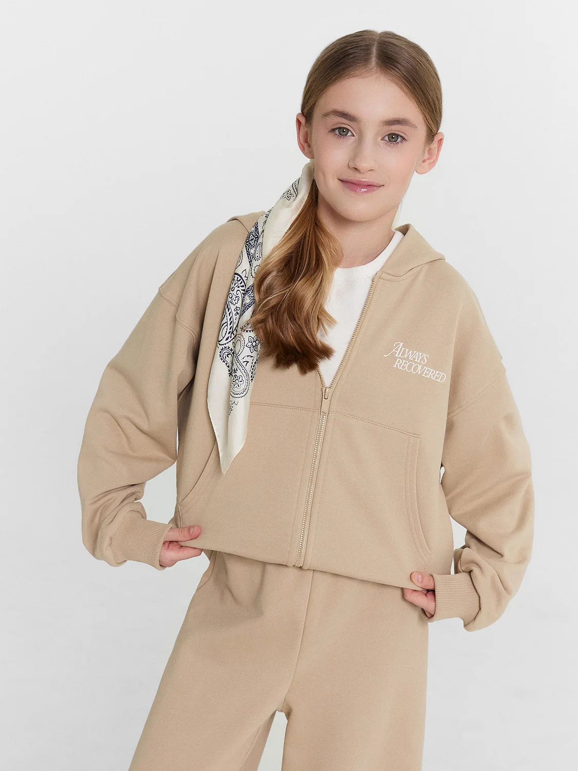 Толстовка для девочек прямого силуэта с капюшоном. Капюшон на подкладке из основного полотна.