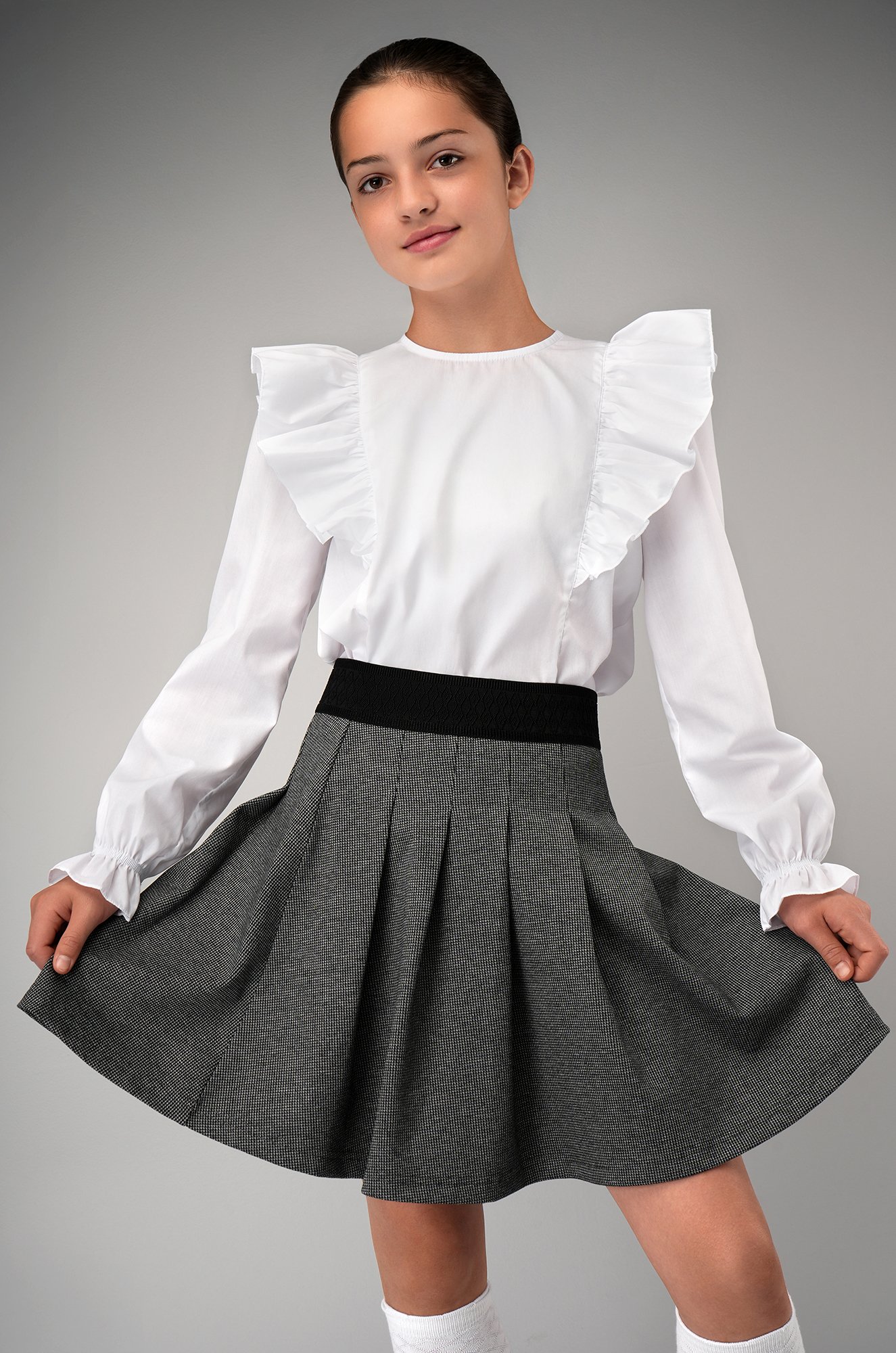 Школьная белая блузка с крылышками для девочки и девочки подростка станет изящным акцентом.