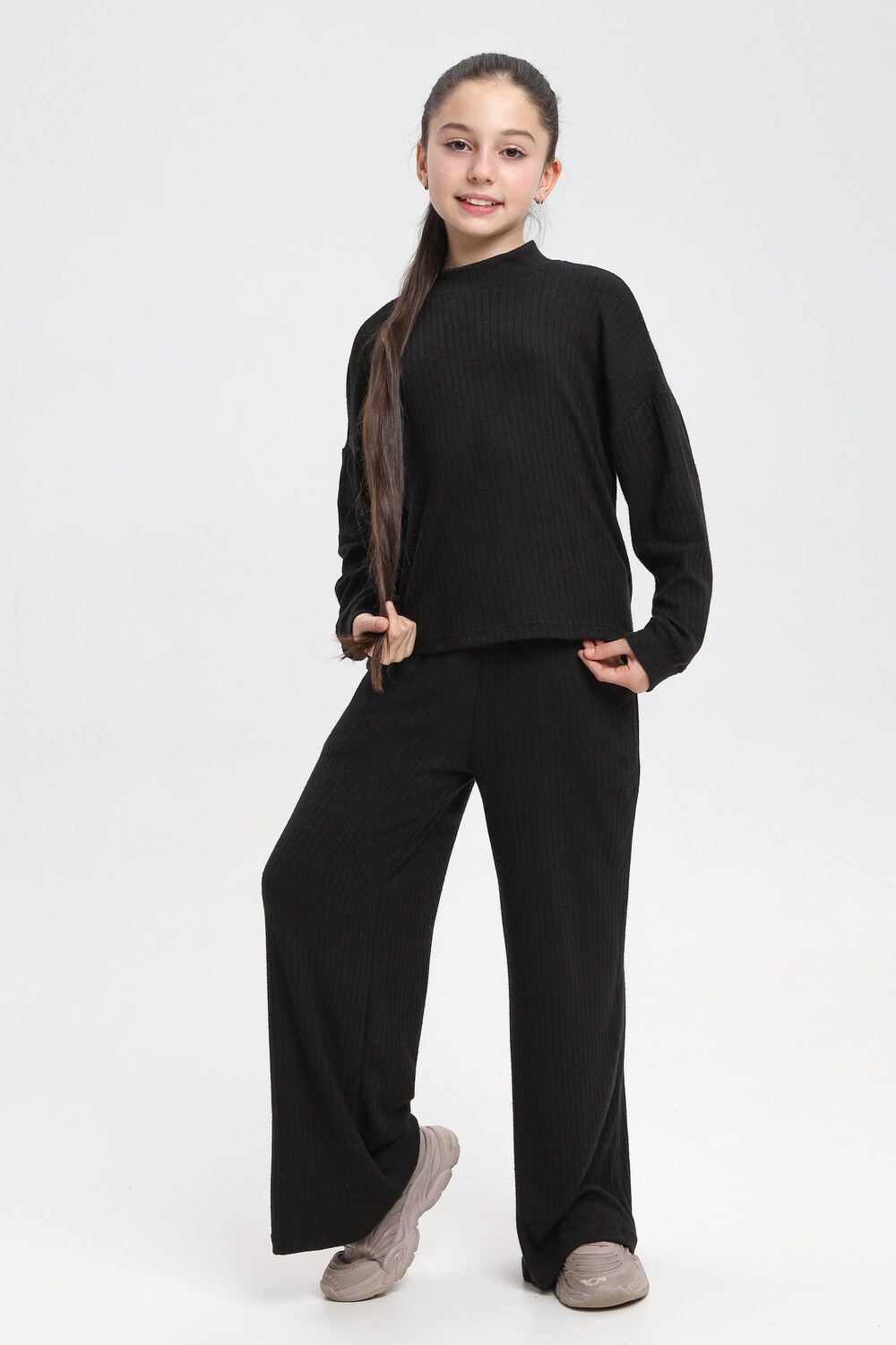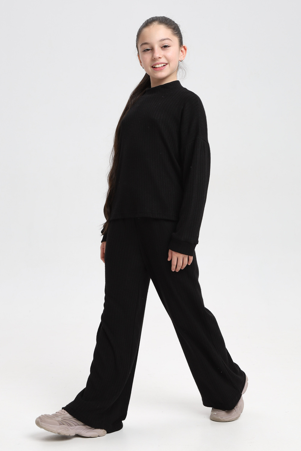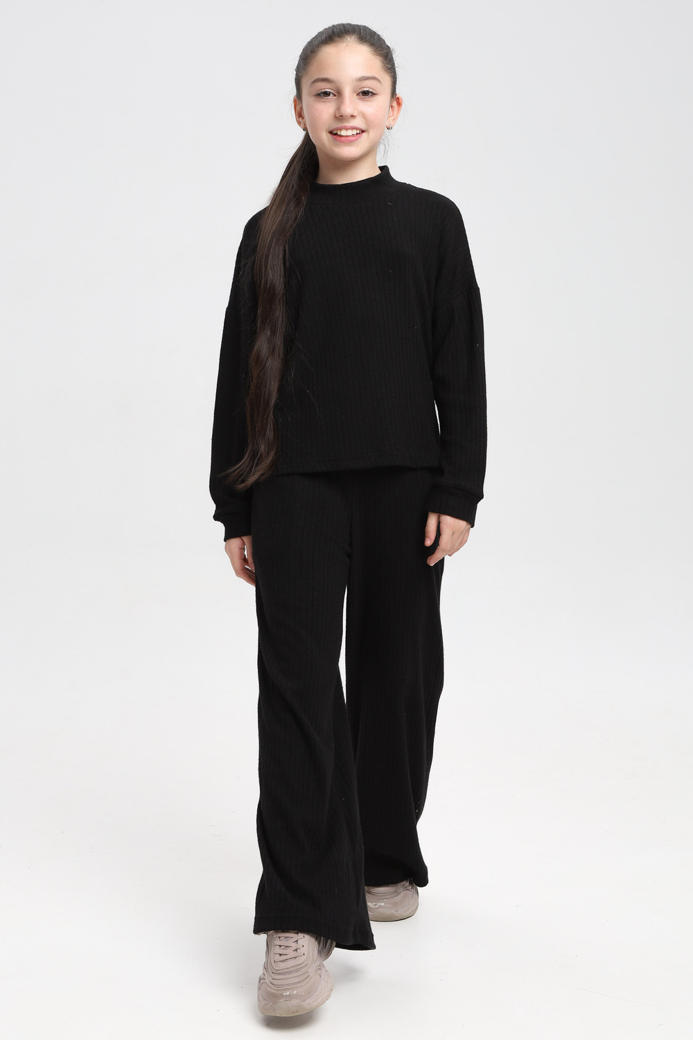 Классный детский костюм из нежной , плотной, теплой лапши ангоры. Водолазка джемпер с длинным рукавом ,брюки палаццо, с карманами. Цвет: бежевый;черный;капучино; Материал: ангора;лапша;ангора;лапша; Состав: 48% вискоза, 20% нейлон, 28%пэ, 4% спандекс.