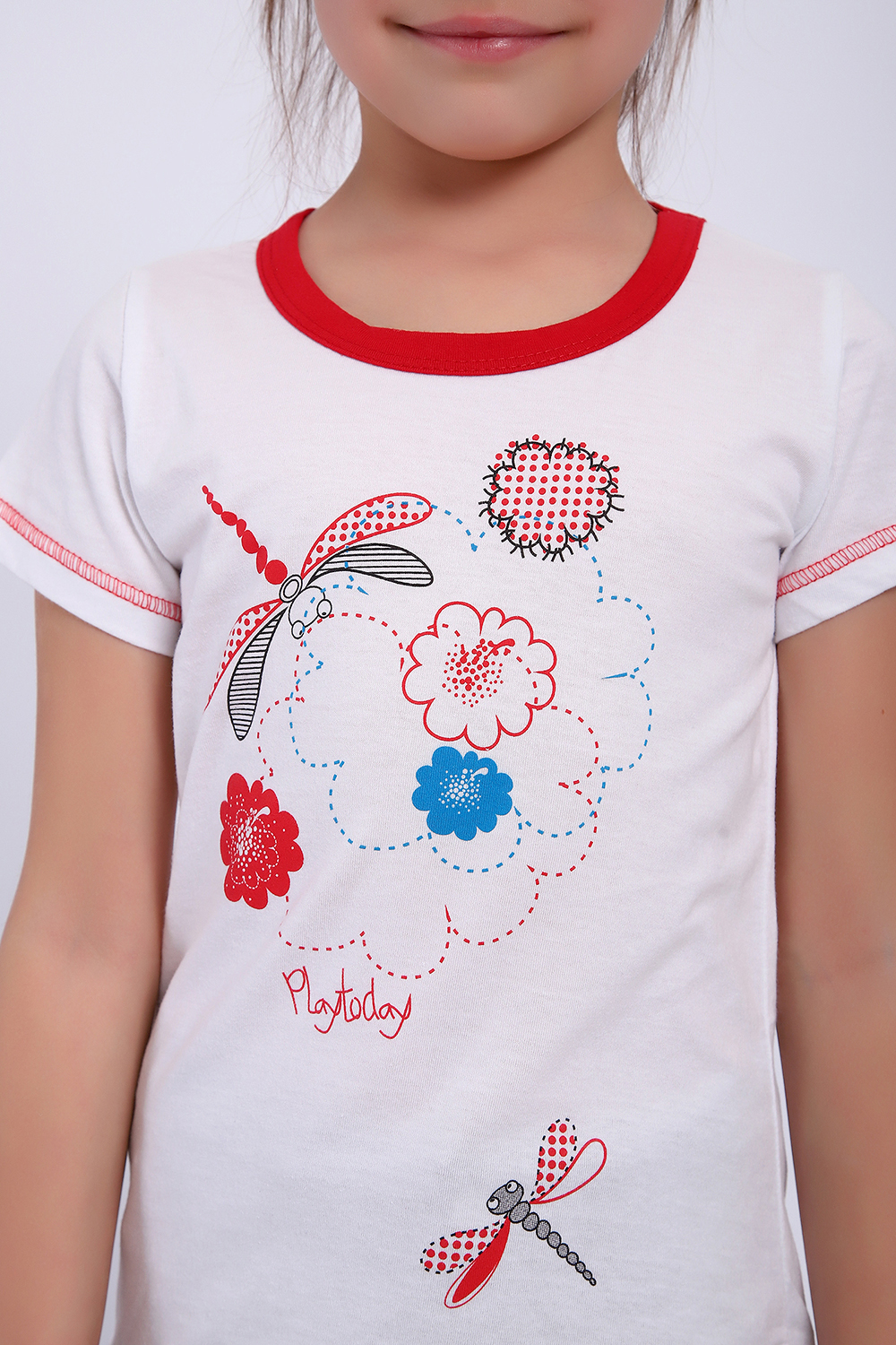 Футболка для девочки. Натуральны хлопковый трикотаж. Стрекозы на белом фоне. Цвет: белый; Материал: кулирка;кулирка; Состав: 100% хлопок.