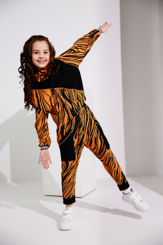 Модный детский комплект имеет итересный крой и сочетание цветов. Костюм двойка представлен в ярких цветах, создан для детей младшего и школьного возраста. Состоит из худи и спортивных брюк джоггеров. Худи укороченное, свободного кроя, объёмным капюшоном, длинными рукавами с яркими манжетами из кашкорсе. Полочка оформлена в виде запаха на одно плечо. Джоггеры свободного силуэта, имеют внизу манжеты, на поясе эластичная резинка(всё выполнено из яркого эластичного кашкорсе). На брюках с 2-х сторон внутренние боковые карманы. Дизайн костюма дополнен ярким декоративным кантом. Костюм актуален в любом виде спорта, в путешествии и ежедневной носке. Рекомендована деликатная стирка при 30 градусах. Состав по тканям: футер 2-х нитка с лайкрой хлопок 72%, ПЭ 20%, кулирка с лайкрой; эластан 8% и хлопок 95% лайкра 5%; кашкорсе - вискоза 50% пэ 45% лайкра 5%