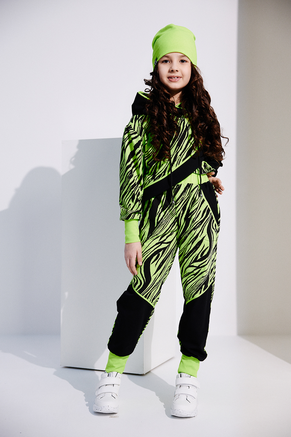 Модный детский комплект имеет итересный крой и сочетание цветов. Костюм двойка представлен в ярких цветах, создан для детей младшего и школьного возраста. Состоит из худи и спортивных брюк джоггеров. Худи укороченное, свободного кроя, объёмным капюшоном, длинными рукавами с яркими манжетами из кашкорсе. Полочка оформлена в виде запаха на одно плечо. Джоггеры свободного силуэта, имеют внизу манжеты, на поясе эластичная резинка(всё выполнено из яркого эластичного кашкорсе). На брюках с 2-х сторон внутренние боковые карманы. Дизайн костюма дополнен ярким декоративным кантом. Костюм актуален в любом виде спорта, в путешествии и ежедневной носке. Рекомендована деликатная стирка при 30 градусах. Состав по тканям: футер 2-х нитка с лайкрой хлопок 72%, ПЭ 20%, кулирка с лайкрой; эластан 8% и хлопок 95% лайкра 5%; кашкорсе - вискоза 50% пэ 45% лайкра 5%