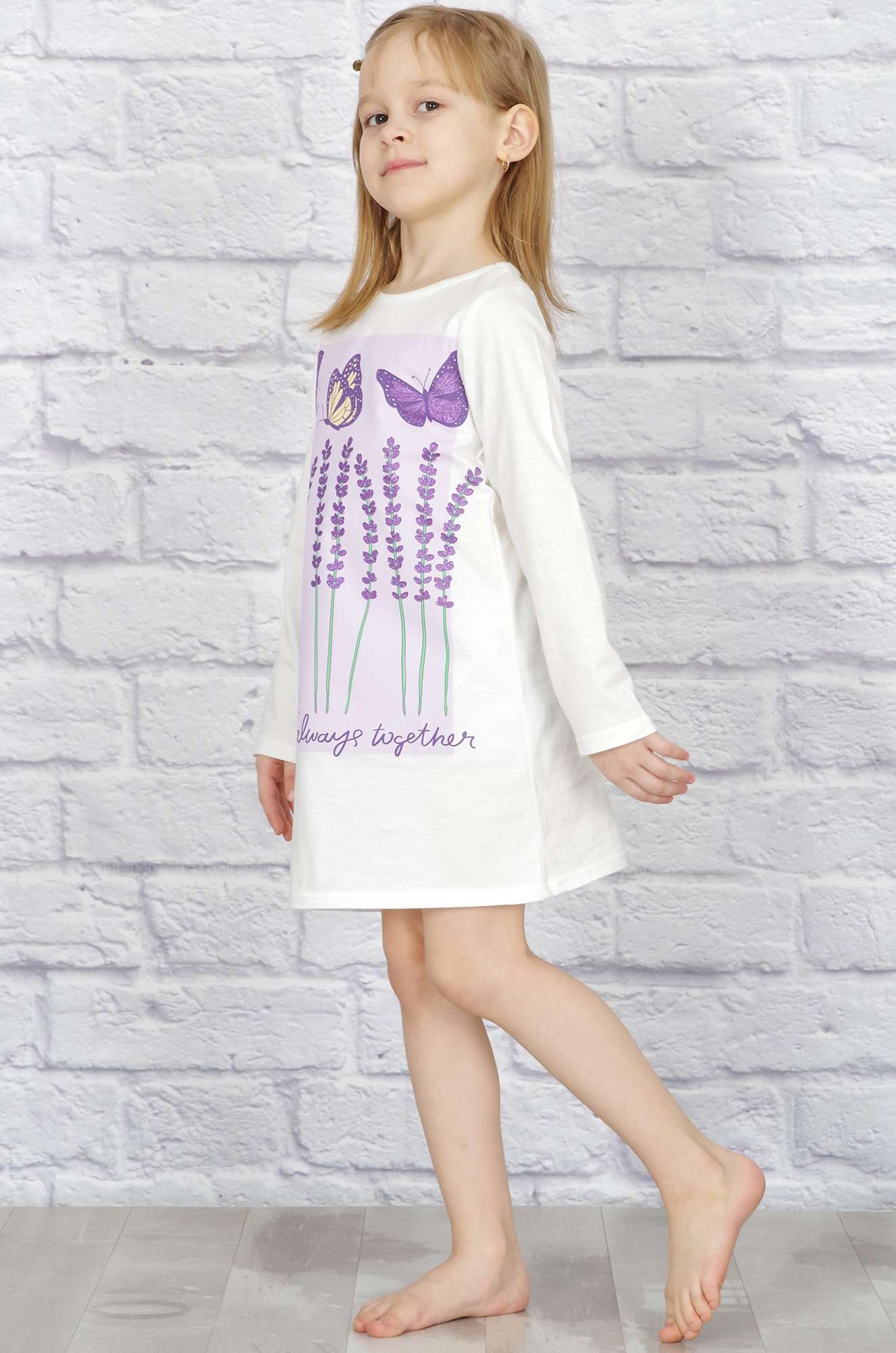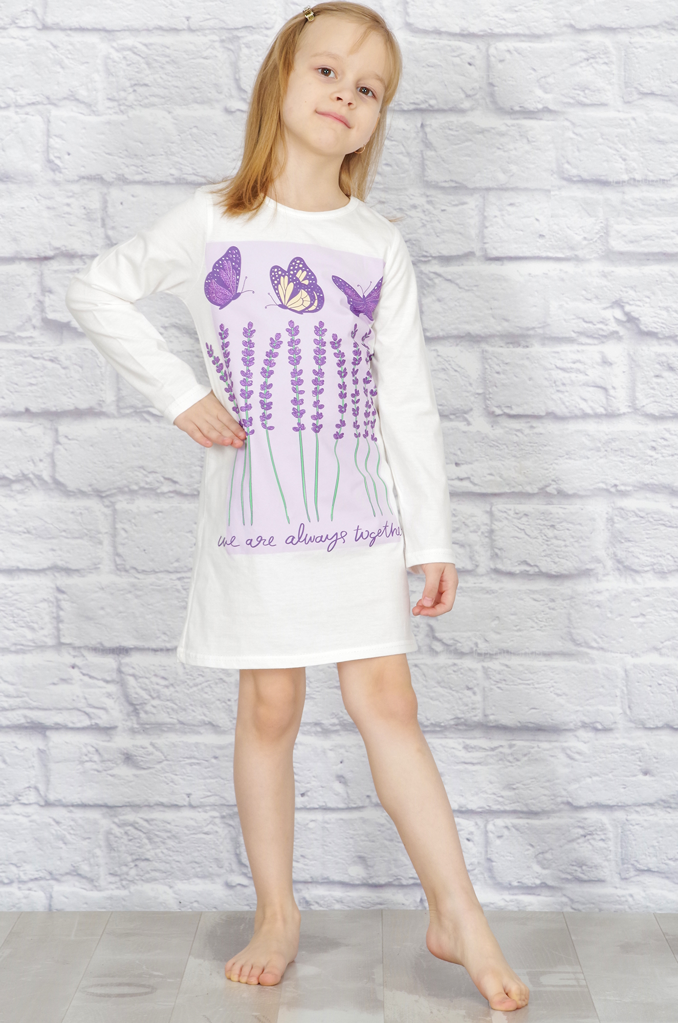 Нежная хлопковая сорочка для девочки. Модель с длинным рукавом, на полочке милый печатный тематический рисунок. Сорочка комфортной длинны, свободная, не стесняет движений.