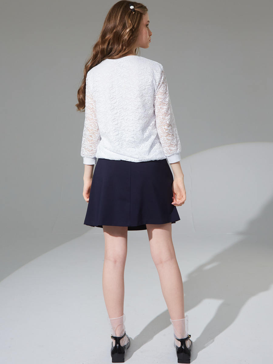 Блузка для девочки из гипюра на подкладке из трикотажного полотна полуприлегающего силуэта,средней длины.Рукава 3/4 из гипюра.На полочке декоративное украшение. молочный