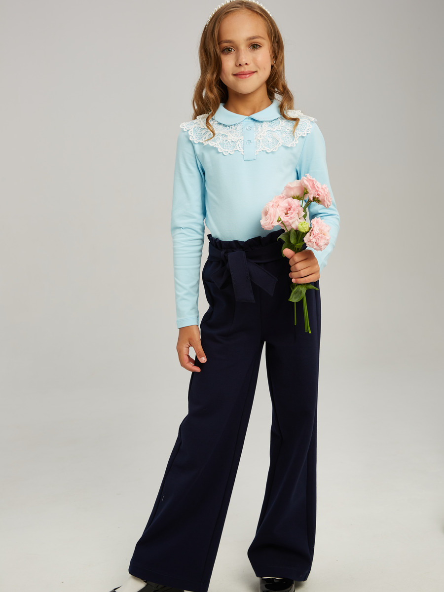 Блузка для девочки из трикотажного полотна с длинным рукавом, прилегающего
