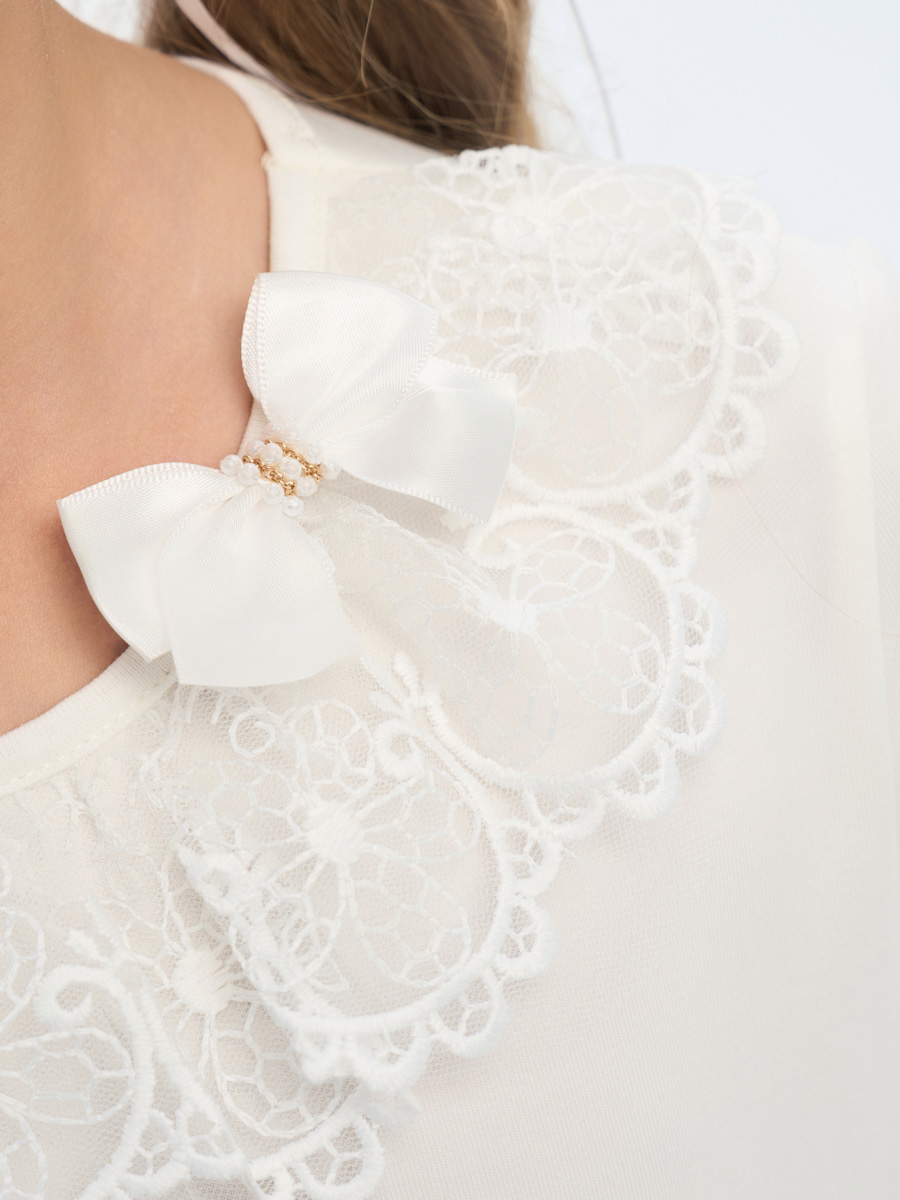 Горловина декорирована двойной оборкой из кружева и сетки.