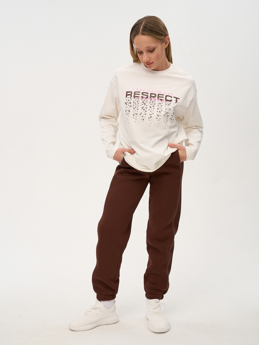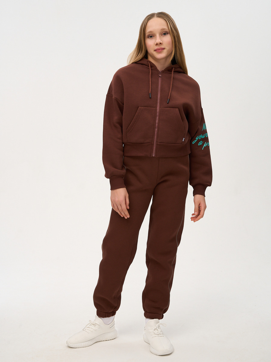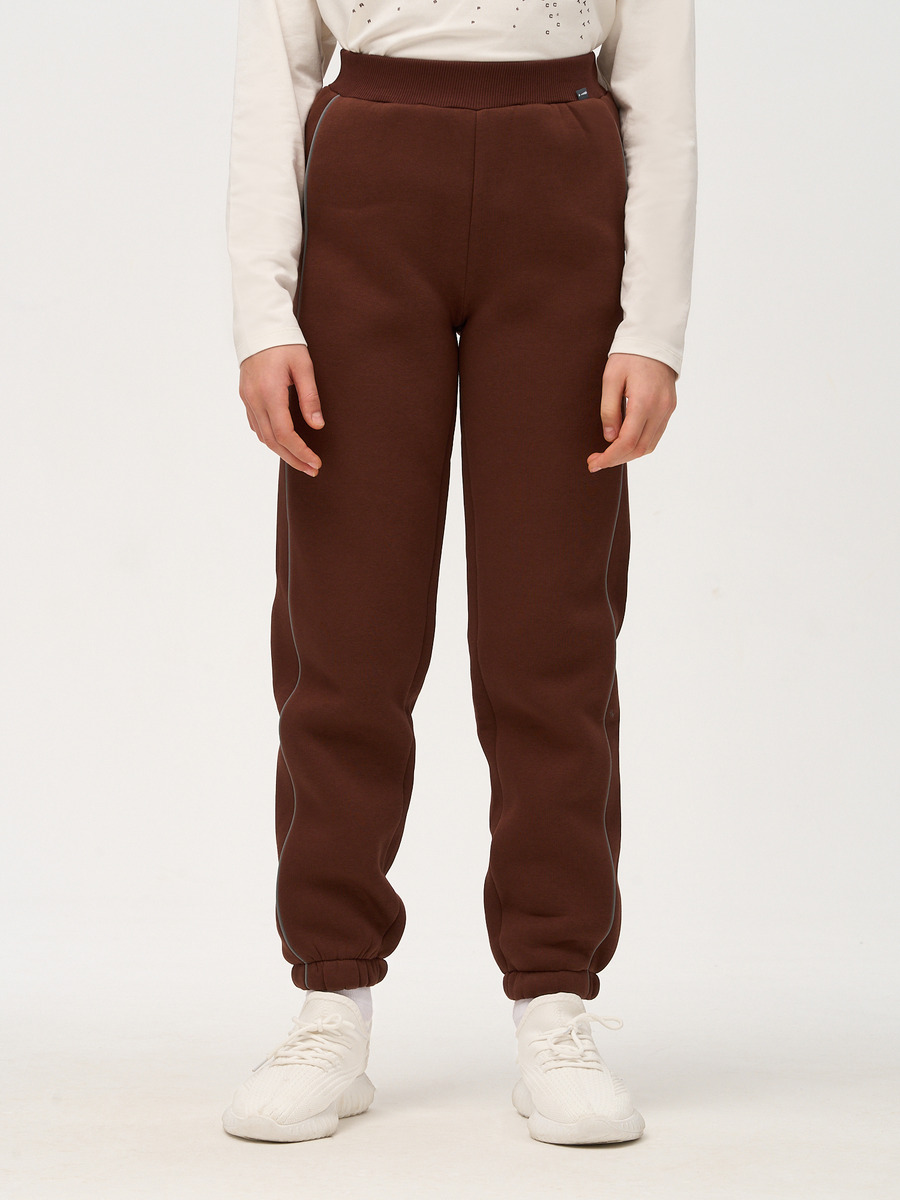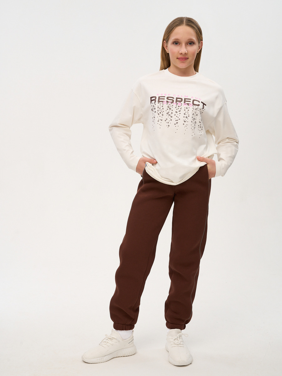 Коллекция "Осень-Зима 2024". Свободные трикотажные брюки "джоггеры" средней посадки для девочки для повседневной носки. Брюки выполнены из хлопкового футера 3-нитки с начёсом с добавлением эластана качества пенье пл. 333 г/м2.
