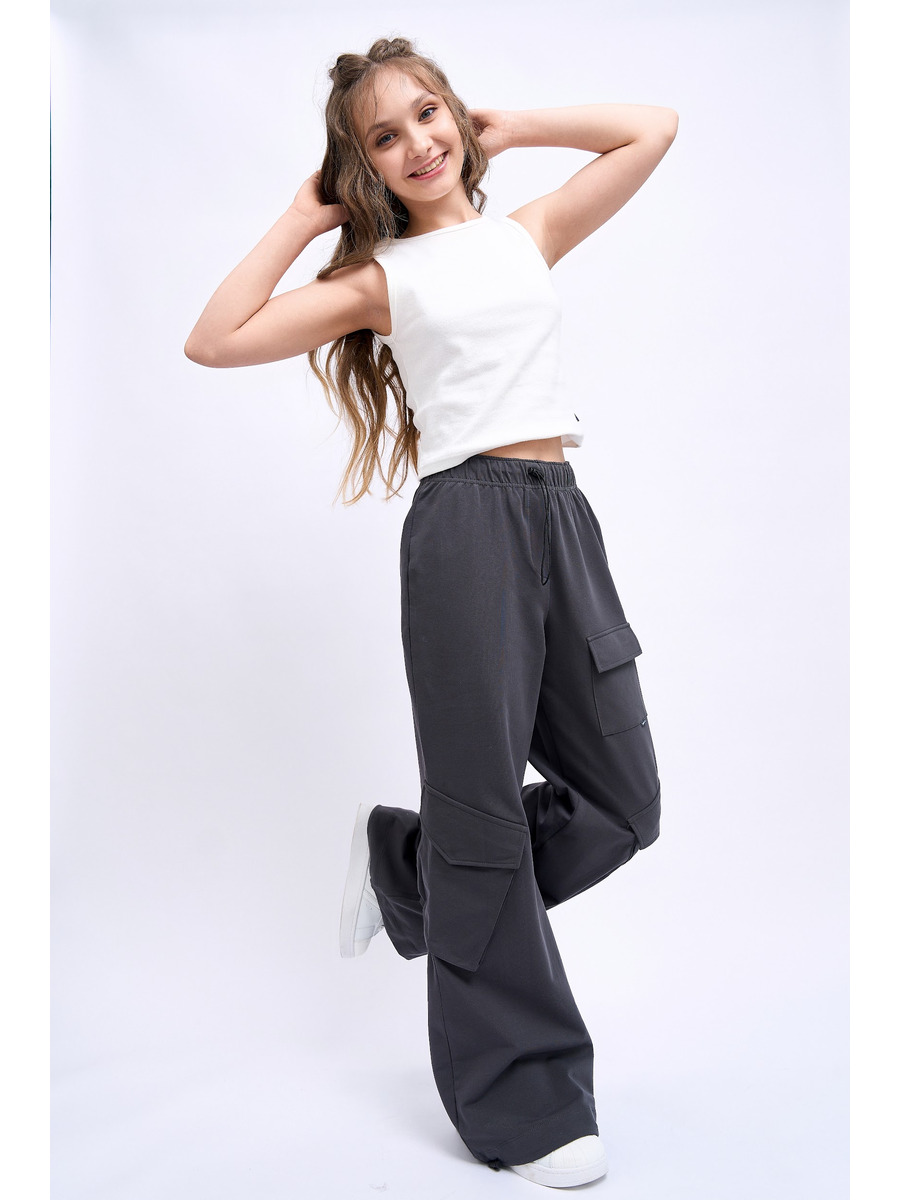 Брюки карго для девочки из высококачественного хлопкового трикотажа – идеальный выбор для повседневных прогулок и спортивных занятий. Эти широкие брюки для подростка обеспечат комфорт благодаря материалу, подходящему для теплых и холодных дней. Свободные оверсайз брюки - популярная модель, которая отлично подойдёт под любой случай и стиль.Имеют удобную резинку на поясе, регулируемую длину и посадку серый