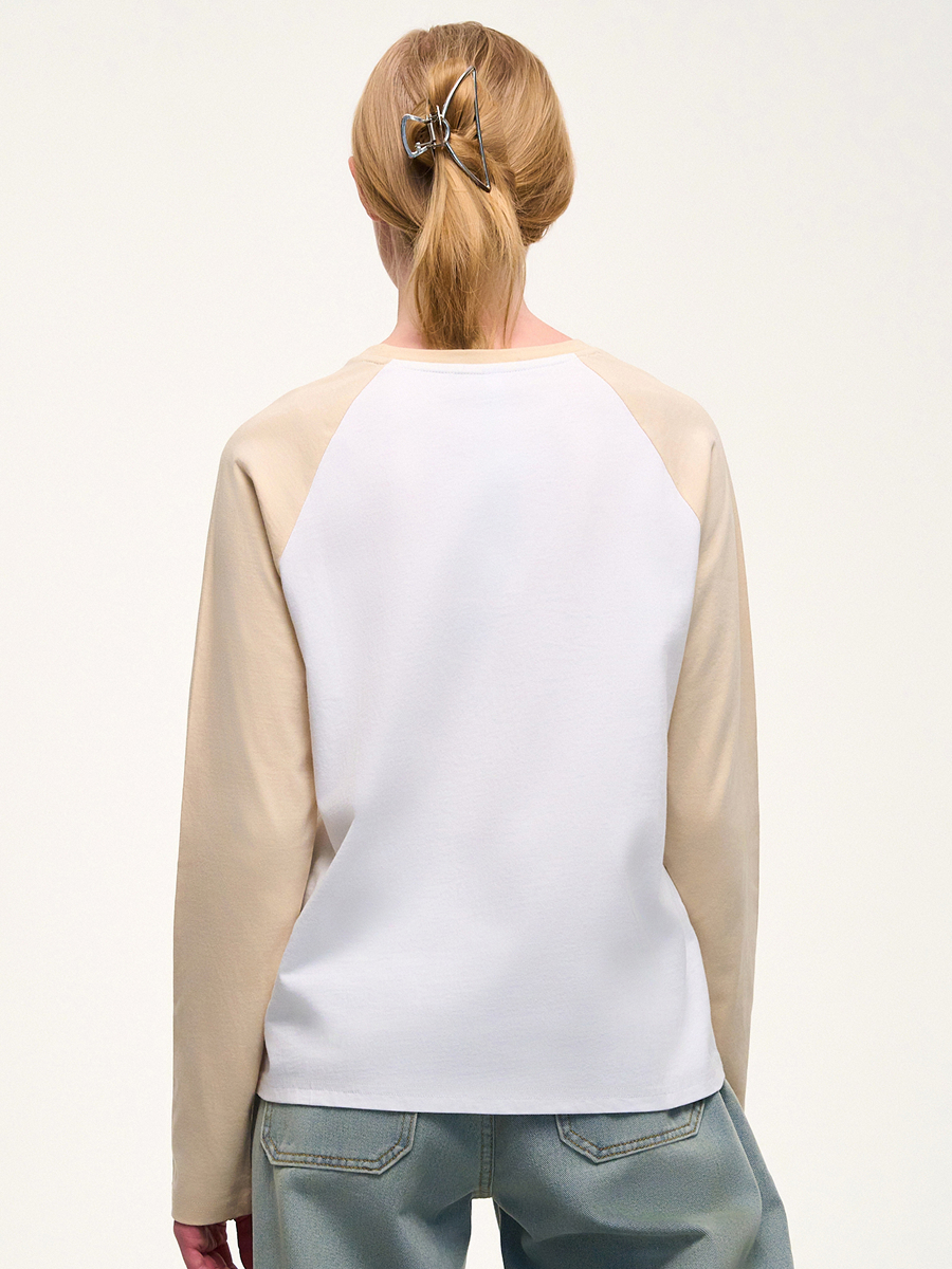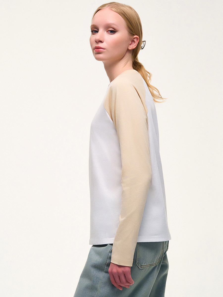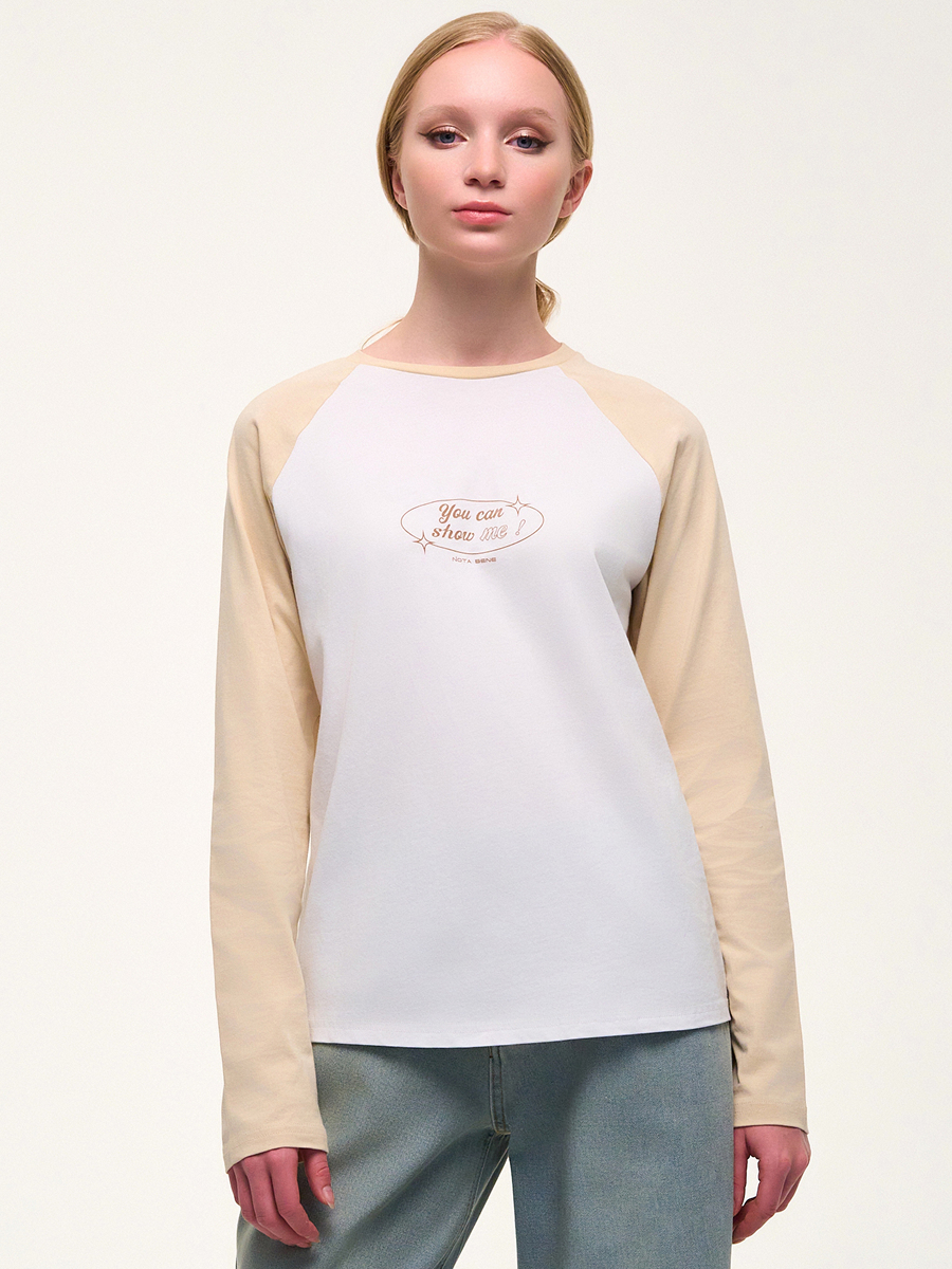 Лонгслив из трикотажа средней плотности с рукавом реглан. Минималистичный принт спереди.