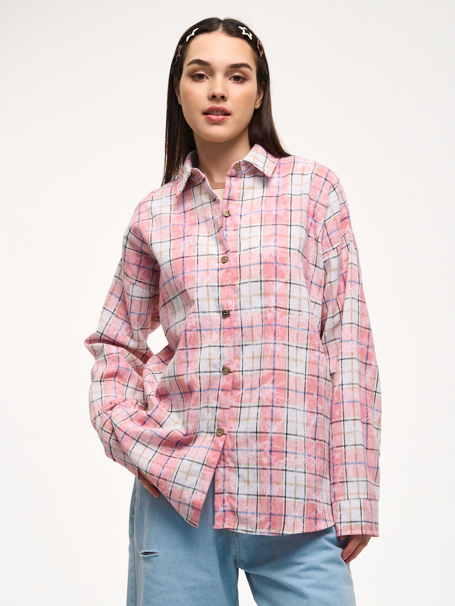 Рубашка из мягкой ткани в клетку. С эффектом потертости. розовый
