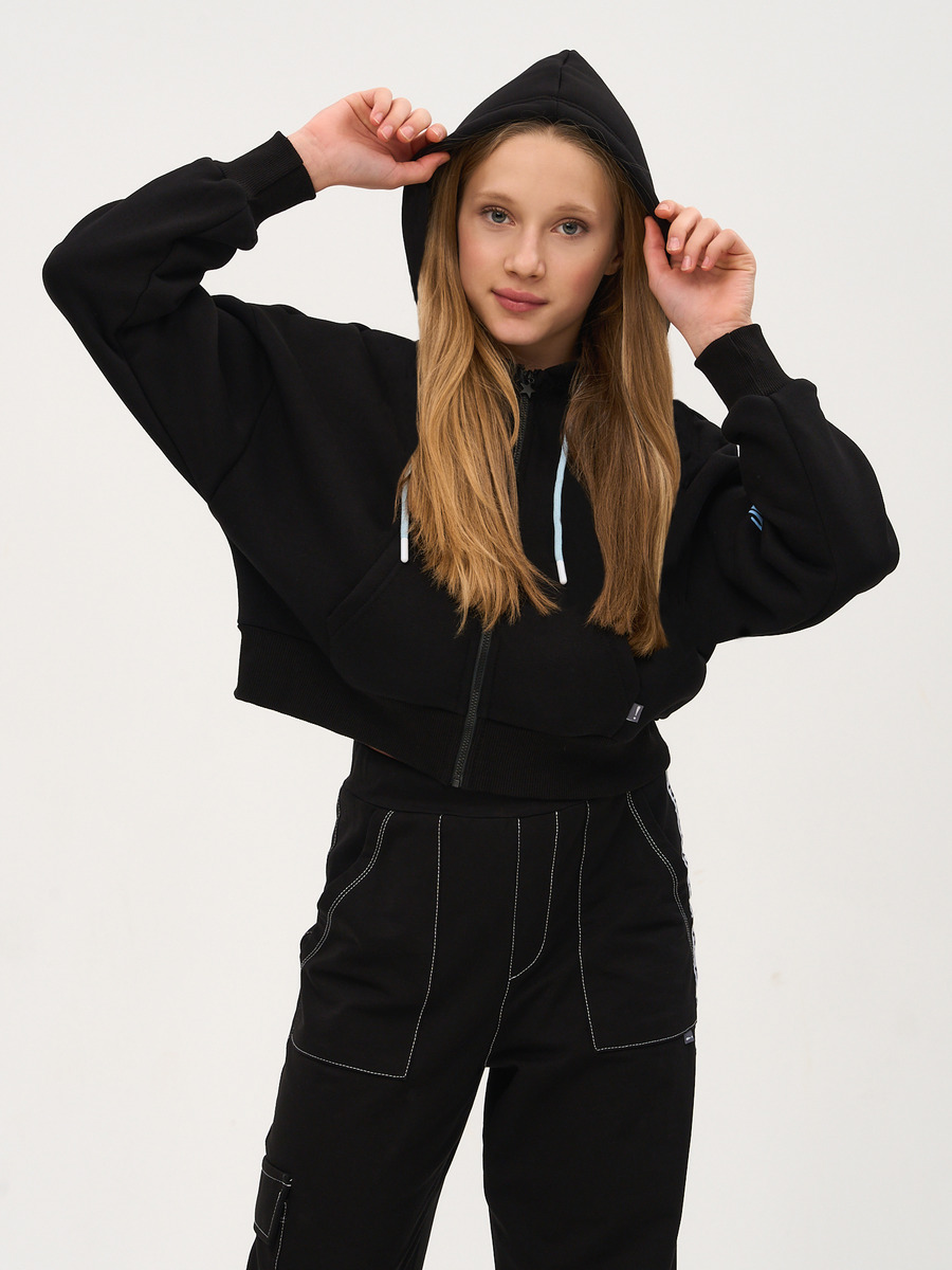 Коллекция "Осень-Зима 2024". Укороченная трикотажная толстовка "зипка" для девочки для повседневной носки из хлопкового футера 3-нитки с начесом с добавлением эластана пл. 250 г/м2.