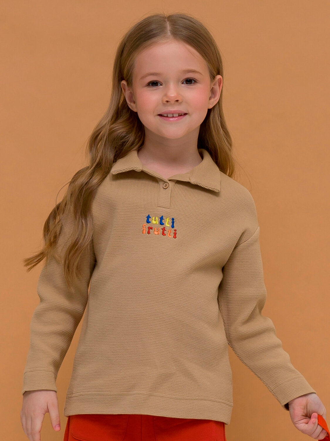 Джемпер для девочки. Молодежная футболка поло с длинным рукавом, свободного прямого кроя и актуальный оверсайз силуэт делают изделие невероятно модным и удобным. Футболка-поло с воротником, отложным, короткая планка на одной пуговице. Рукав рубашечного типа к низу зауженный. По низу изделия и низу рукава выполнена широкая подгибка. Тренд сезона - тактильно приятная, фактурная ткань вафля. Толстовка детская без капюшона согреет в прохладную погоду, охладит в жаркую пропуская воздух, подстраиваясь под нужный температурный режим. Можно надевать под ветровку как весенний джемпер, под тонкую жилетку как летний джемпер или в качестве самостоятельного элемента верхнего гардероба девочек. Объемная кофта подростковая самая уютная вещь на весну и на лето. Свитшот для малыша - базовая вещь в гардеробе стильного подростка. Благодаря уникальному крою, удлиненный джемпер комфортно подойдет для любой фигуры девушки, для высоких и невысоких детей. Мягкий трикотажный лонгслив для девочки с длинным рукавом подойдет на улицу для прогулок, отдыха на природе, путешествий, посещение кружков и секций, на танцы, хип-хопа, занятия спортом, как домашняя одежда для дома и повседневный вариант. Стильный лонгслив яркий с принтом и рисунком станет самым любимым и востребованным в гардеробе ребенка.