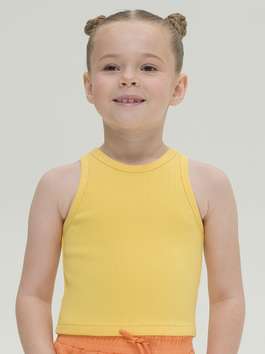 Легкая, летняя майка в рубчик для девочек - базовая модель на каждый день. Выполнена из хлопкового кашкорсе. Отлично пропускает воздух, быстро сохнет, не растягивается. Безупречный крой и фактура ткани дарит максимальный комфорт. Горловина и пройма обработаны широким пайпингом из основной ткани не растягиваются, держат форму - один из самых актуальных трендов сезона. Майку можно сочетать с любым низом, создавая модные образы. Это идеальная повседневная одежда для девочек для жаркого лета.