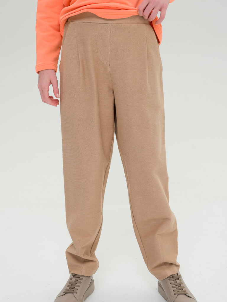 Слоучи из футера для девочки. 100% хлопок в составе – ткань мягкая, дышащая, приятная на ощупь. Сшиты изнанкой футера наружу и выделяются оригинальной петельной фактурой – полное соответствие тренду сезона. Широкая резинка по линии талии сбоку и на спинке, имитация гульфика – как у джинсов, но только с мягким комфортом футера. Большой объем в бедрах и сужение книзу за счет декоративных вытачек – для свободы движений и поддержания формы. Удобно надевать, приятно носить, легко быть активным каждый день. Слоучи комбинируются с футболкой или лонгсливом.Состав: 100%хлопокВозрастная группа: Дети | (7-11)Сезон: ВеснаГод: 2023Пол: Девочки