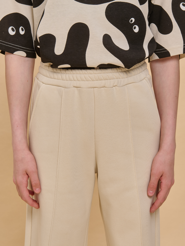 Брюки палаццо для девочки. Актуальные брюки свободного кроя подарят ребёнку комфорт и не будут стеснять движений. Широкая резинка в поясе не давит и не перекручивается. С помощью внутреннего шнура в поясе можно регулировать объём и посадку брюк. По переду застроченные стрелки — модный тренд сезона. По бокам глубокие наклонные карманы. Изделие лаконичного дизайна, без принта. Брюки неприхотливы в уходе. В составе ткани (футер с начёсом) преобладает качественный хлопок — штаны тёплые, мягкие и воздухопроницаемые, дают коже дышать. Благодаря полиэстеру изделие легко стирается, быстро сохнет и сохраняет первоначальную форму в течение долгого времени. Брюки детские выполнены в нескольких универсальных и трендовых цветах — они легко комбинируются с различными футболками, джемперами, толстовками, куртками. Палаццо брюки для девочек дошкольного и младшего школьного возраста, а также девочек-подростков. Брюки широкого кроя подходят для детского сада, прогулок, активного отдыха, спорта, а также для дома. Помните о правильном уходе за изделием: рекомендуется стирать при температуре не выше 30 °C, без предварительного замачивания, с изнанки. Это поможет сохранить качество и цвет брюк на длительное время. Не забывайте о выборе правильного размера. Используйте таблицу размеров на фотографии, чтобы выбрать подходящий вариант для вашей девочки. Обратите внимание, что цвет товара на экране вашего устройства может отличаться от реального. Состав: 66%хлопок 34%полиэстер Возрастная группа: Kids Сезон: Осень Год: 2024 Пол: Девочки