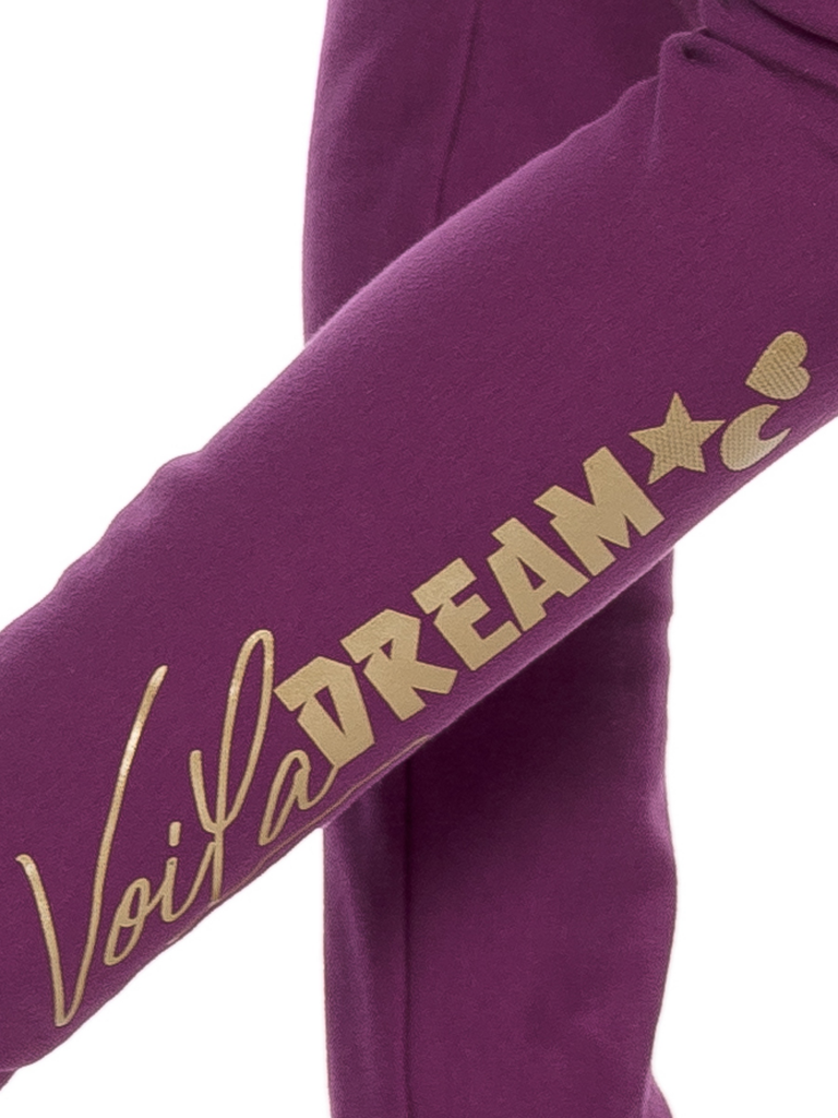 Лосины для девочек из футера с начёсом, локальный rubber принт с золотым металликом. Перевод Мечта. Вуаля.Состав: 95%хлопок 5%эластанВозрастная группа: Дети | (12-14)Сезон: ОсеньКоллекция: ФУТУРО СКАЗКА