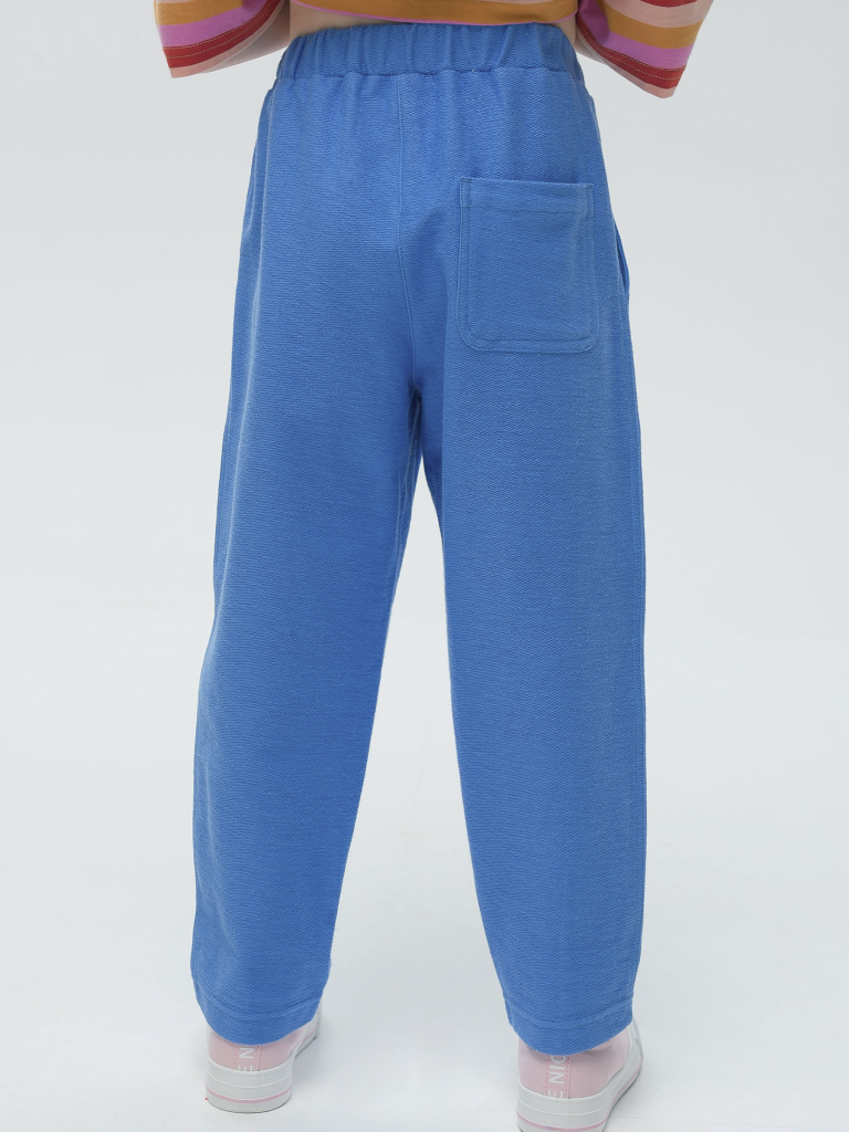 Слоучи из футера для девочки. 100% хлопок в составе – ткань мягкая, дышащая, приятная на ощупь. Сшиты изнанкой футера наружу и выделяются оригинальной петельной фактурой – полное соответствие тренду сезона. Широкая резинка по линии талии сбоку и на спинке, имитация гульфика – как у джинсов, но только с мягким комфортом футера. Большой объем в бедрах и сужение книзу за счет декоративных вытачек – для свободы движений и поддержания формы. Удобно надевать, приятно носить, легко быть активным каждый день. Слоучи комбинируются с футболкой или лонгсливом.Состав: 100%хлопокВозрастная группа: Дети | (1-6)Сезон: ВеснаГод: 2023Пол: Девочки
