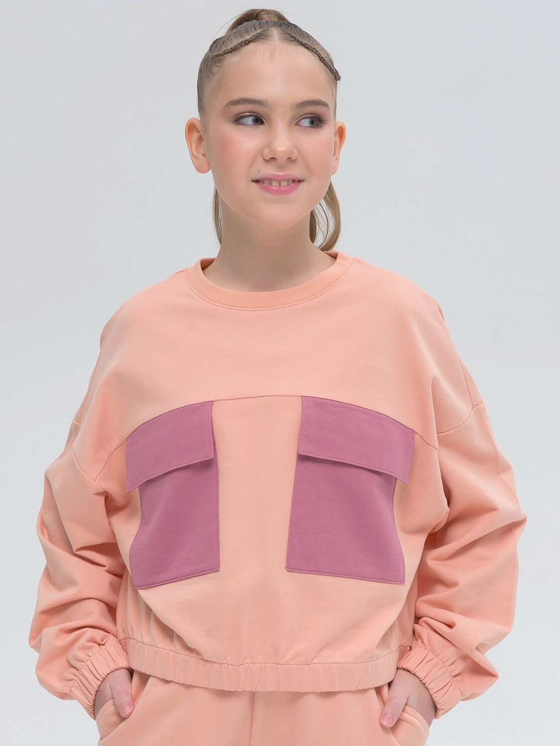 Стильная детская короткая толстовка для девочки оверсайз. Умный дизайн с люверсами для наушников. Модная укороченная кофта с округлым вырезом покорит сердца девочек современным дизайном, невероятно удобным кроем и уникальным внешним видом. Джемпер для девочки из тонкого хлопкового футера длиной выше талии, силуэт прямой, очень расслабленный объем изделия, сильно спущенное плечо. Модель без воротника, с притачной бейкой из рибаны. Длинный широкий рукав по низу собирается на резинку. Низ изделия собирается на резинку и дополнительно декорирован люверсами и продернутым эластичным шнуром. На передней половинке изделия спроектирован миниатюрный карман-портфель в виде мешочка, сверху собирающегося с помощью эластичного шнура и стоппера. Еще одна фишка: внутри кармана и над карманом расположены крупные люверсы для продергивания шнурков от наушников. Кроп топ толстовка для подростков свободного кроя впишется в детский гардероб и удивит своей комбинаторностью, с ней сочетаются любые подростковые вещи. Легко создать стильный образ с эффектом многослойности наряда. Можно надевать на длинную майку, платье, сочетать с узкими и широкими брюками. Короткая толстовка для подростка подойдет для прогулок весной и как милый, мягкий, яркий теплый свитшот для долгих вечеров с друзьями на лето. Свитшот для детей можно надевать как спортивную кофту с длинным рукавом для занятий спортом, в ней удобно прыгать, бегать. Качественный детский лонгслив не боится испытаний активными играми и частыми стирками. Толстовка для девочки без капюшона, прочная, тактильно приятная и безопасная для ребенка ткань очень износостойкая и надолго сохранит красивый внешний вид. Толстовка с карманам подойдет как детская домашняя одежда для дома, для повседневной носки на каждый день. Универсальная модная кофта подойдет как весенняя и летняя объемная вещь. Широкий размерный ряд 152 158 164.