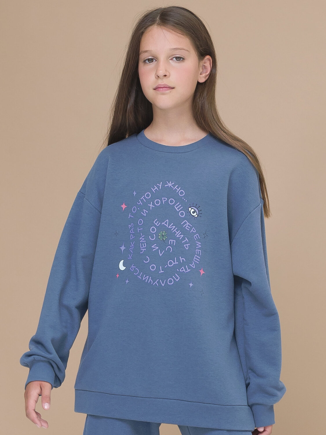 Худи для девочки с ярким принтом. Модный детский свитшот свободного силуэта с длинным рукавом. Это базовая вещь для детского гардероба. Красивая и яркая одежда для ребенка, практичная и удобная при надевании для родителей. Свитер оверсайз для детей из качественного полотна, мягкий эластичный футер, подарит приятные тактильные ощущения, согреет в любую погоду не сковывая движения. Теперь одеваться будет в радость. Теплая кофта для девочек станет самой любимой. Можно надевать как верхняя одежда на осень или под другие вещи на зиму. Утепленный лонгслив подойдет для занятий спортом как спортивная одежда, для прогулок, для школы, а также для повседневной носки на каждый день. Удобная толстовка для подростка, это универсальная вещь и подарок для любого случая.