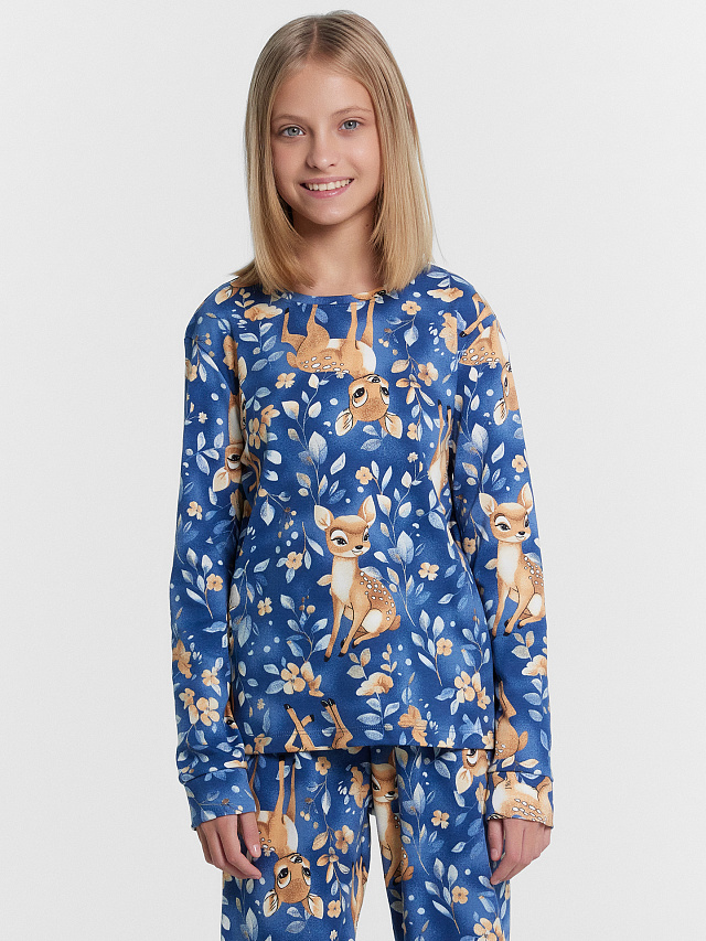 Уютный комплект для девочек, состоящий из джемпера и брюк. Джемпер свободного силуэта с круглой горловиной и длинными рукавами с манжетами. Брюки прямые с эластичной талией, обеспечивающей отличную посадку. Стильная и комфортная детская пижама — лучший вариант для прохладного времени года. Широкий размерный ряд и красивые расцветки моделей в линейке позволят подобрать идеальный вариант для каждой девочки. Этот комплект станет прекрасным подарком на любой праздник. Рекомендуем!