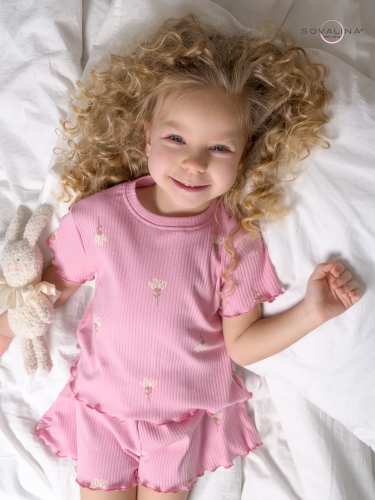 Трикотажная свободная пижама для девочки ТМ SOVAlina. Включает в себя футболку с коротким рукавом и широкие шорты на резинке в поясе. Изготовлен из плотного дышащего материала "лапша" высокого качества из 100% хлопка. Обеспечивает максимальный комфорт и уют для ребенка. Эластичная мягкая ткань подарит удобство и свободу в движениях. Детский теплый комплект двойка с рюшами подойдет для дома, отдыха и сна. Милый и красивый костюмчик с расклешенными шортами будет отличным выбором для гардероба девочки. Пижамный комплект в рубчик подойдет осенью, весной и даже зимой в детский сад. Так же, этот костюм идеальный подарок на день рождения или 8 марта для маленькой дочки, крестницы или внучки. Кофту и шортики можно носить как вместе так и по отдельности с другими вещами, создавая комфортные и удобные комплекты одежды для домашнего времяпровождения.