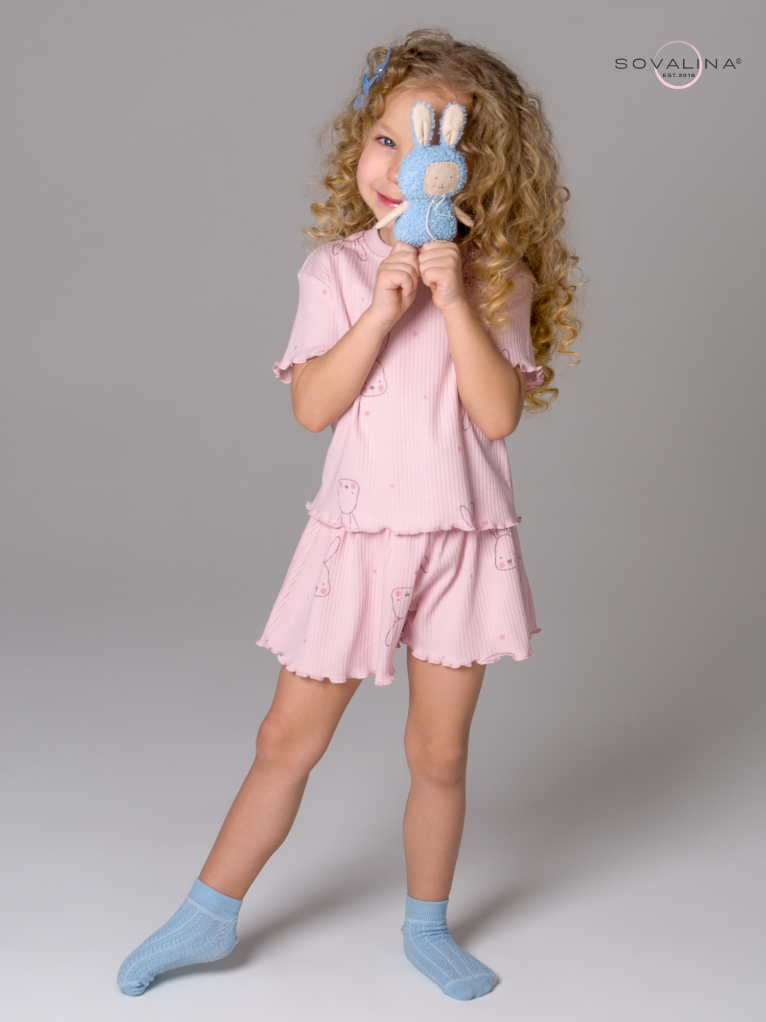 Трикотажная свободная пижама для девочки ТМ SOVAlina. Включает в себя футболку с коротким рукавом и широкие шорты на резинке в поясе. Изготовлен из плотного дышащего материала "лапша" высокого качества из 100% хлопка. Обеспечивает максимальный комфорт и уют для ребенка. Эластичная мягкая ткань подарит удобство и свободу в движениях. Детский теплый комплект двойка с рюшами подойдет для дома, отдыха и сна. Милый и красивый костюмчик с расклешенными шортами будет отличным выбором для гардероба девочки. Пижамный комплект в рубчик подойдет осенью, весной и даже зимой в детский сад. Так же, этот костюм идеальный подарок на день рождения или 8 марта для маленькой дочки, крестницы или внучки. Кофту и шортики можно носить как вместе так и по отдельности с другими вещами, создавая комфортные и удобные комплекты одежды для домашнего времяпровождения.
