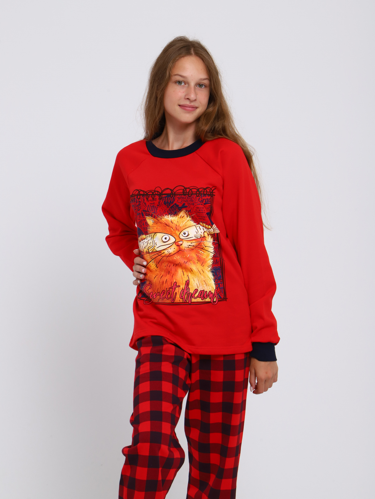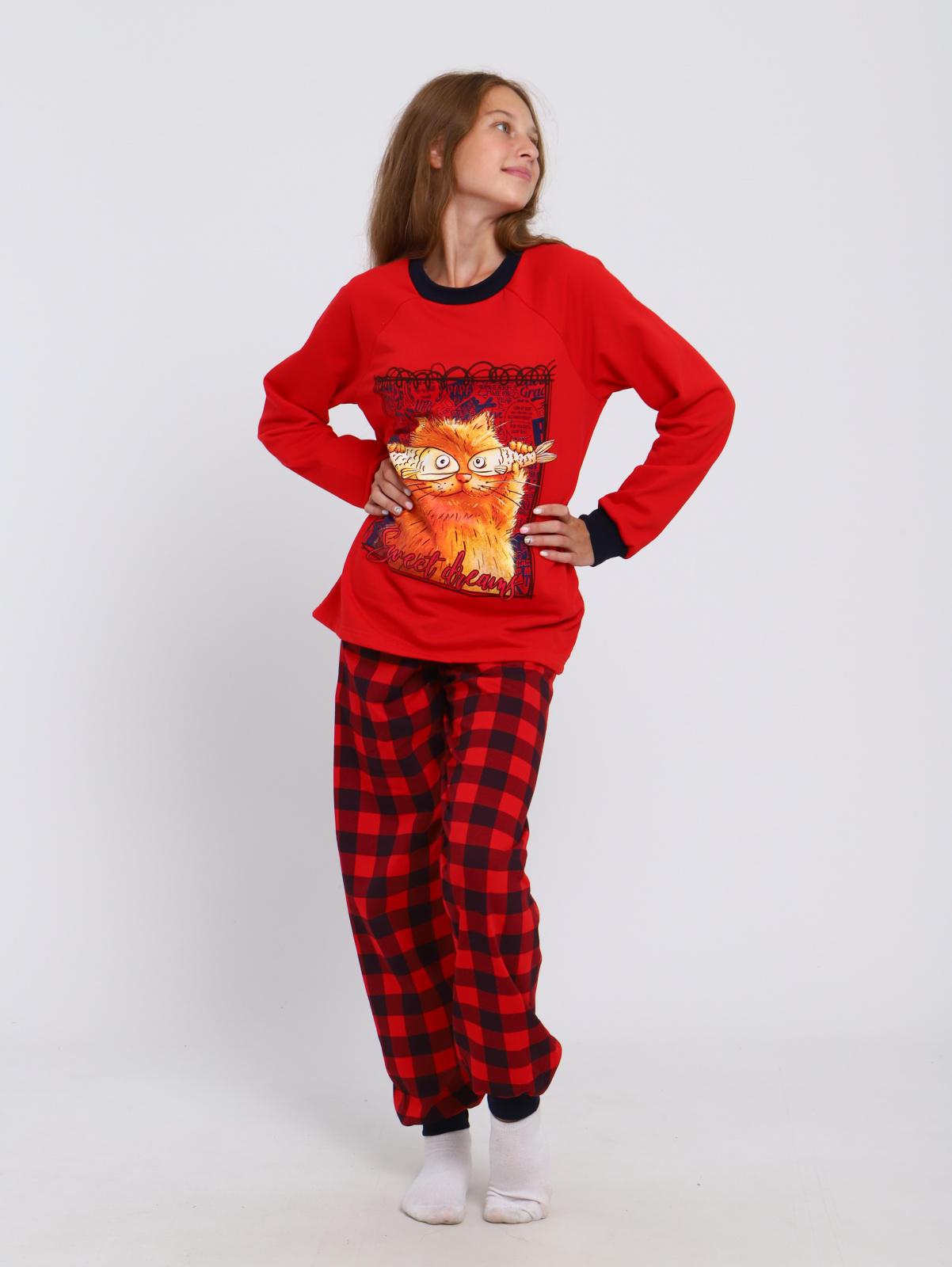 Детская яркая пижама для мальчиков и девочек. Брюки свободного кроя, снизу на манжете. Кофта с О-образной горловиной, рукав-реглан, на полочке оригинальный и забавный принт. Подростковая пижама для мальчиков и девочек с принтом из натурального хлопкового легкого трикотажа . Хлопковый костюм подростковый для дома, может использоваться не только как пижама, но и как уютный домашний костюм. Пижама детская состоит из кофты с длинным рукавом и брючек. Домашний костюм для подростка пошит в свободном полуприлегающем стиле. Пояс брюк пижамки для детей школьников на мягкой эластичной резинке, не давит. Брючный домашний костюм отлично подойдет не только для сна. Комплект может быть очень удобной и комфортной домашней одеждой. В двойке для дома классно играть в игры с домочадцами или делать уроки. Утренний завтрак в атмосфере уюта и заботы с любимыми в этой пижамке будет идеален. Атмосфера счастья складывается из таких мелочей, как удобная одежда с позитивным рисунком, улыбка мамы, запах какао... Трикотаж костюмчика для дома - дышащий, хлопковый. Поскольку хлопок дает усадку, мы заложили в лекала припуск на усадку, что бы после стирки длина не оказалась коротковатой. Пижама демисезонная. Она может использоваться круглогодично. Пижаму выбирают и мальчики и девочки. Это прекрасный полезный подарок ! Подарите заботу и любовь с этой замечательной пижамкой! Домашний комплект для подростков с начесом внутри согреет в межсезонье. Одежда для сна модной расцветкой поднимет настроение и будет прекрасным подарком мальчику, сыну или внуку на день рождения. Пижамы произведены в России, из качественного натурального хлопка и имеют все необходимые сертификаты. Наша пижама детская идет в размер. Для более уверенного выбора, воспользуйтесь удобной табличкой с замерами изделий в сантиметрах на одном из фото. Подходит для фотосессий. У пижам отличное качество, подтвержденное тысячами продаж и сотнями положительных отзывов. Носите с удовольствием и возвращайтесь к нам снова, чтобы купить еще один дизайн!