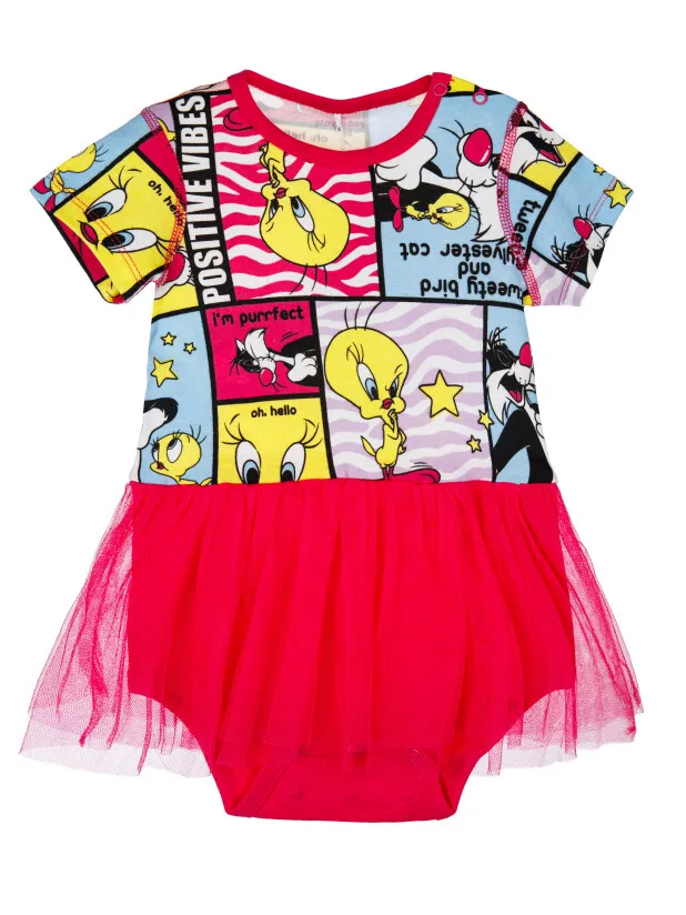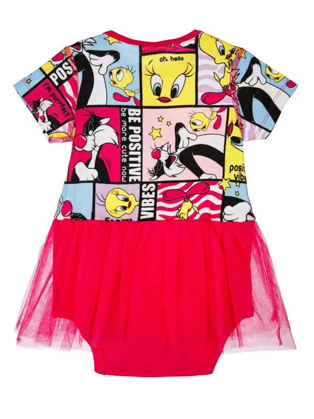 Платье-боди из натурального хлопкового двойного трикотажа и юбкой из сетки. 100% хлопок. Боди имеет дополнительный ряд кнопок, чтобы расти вместе с малышом.