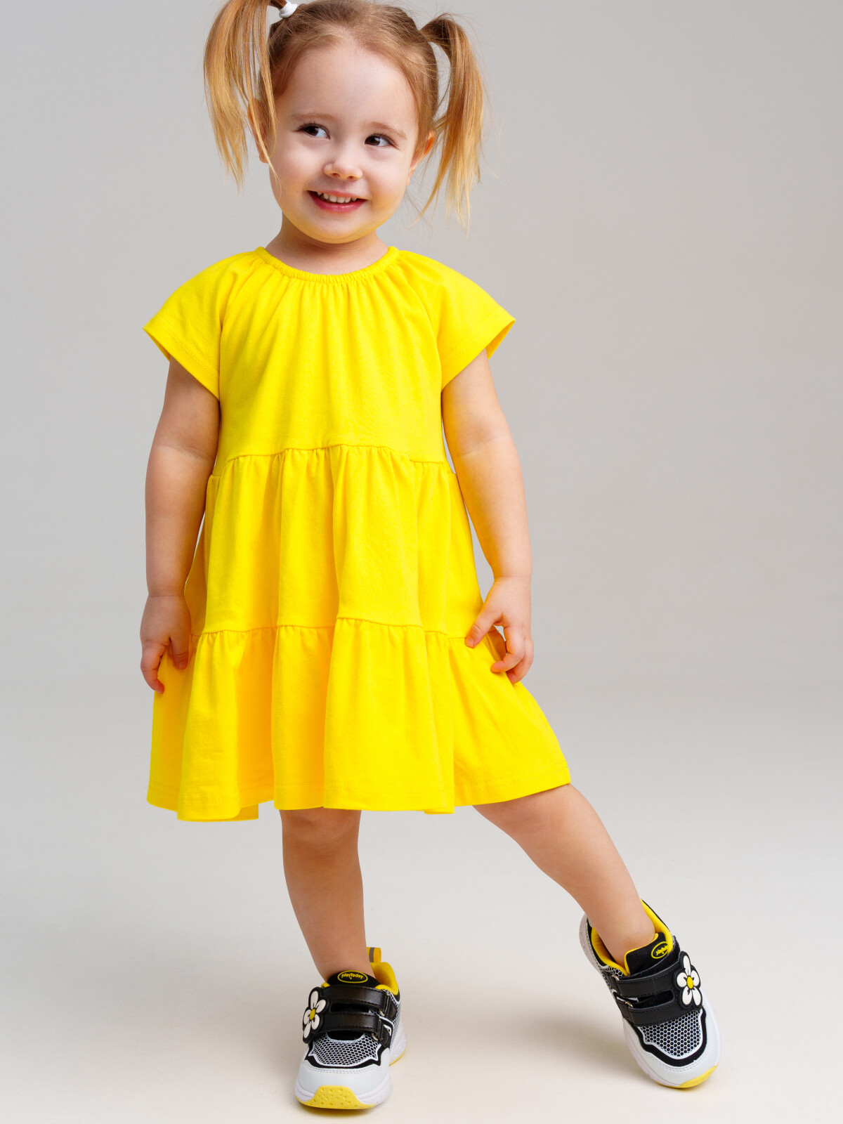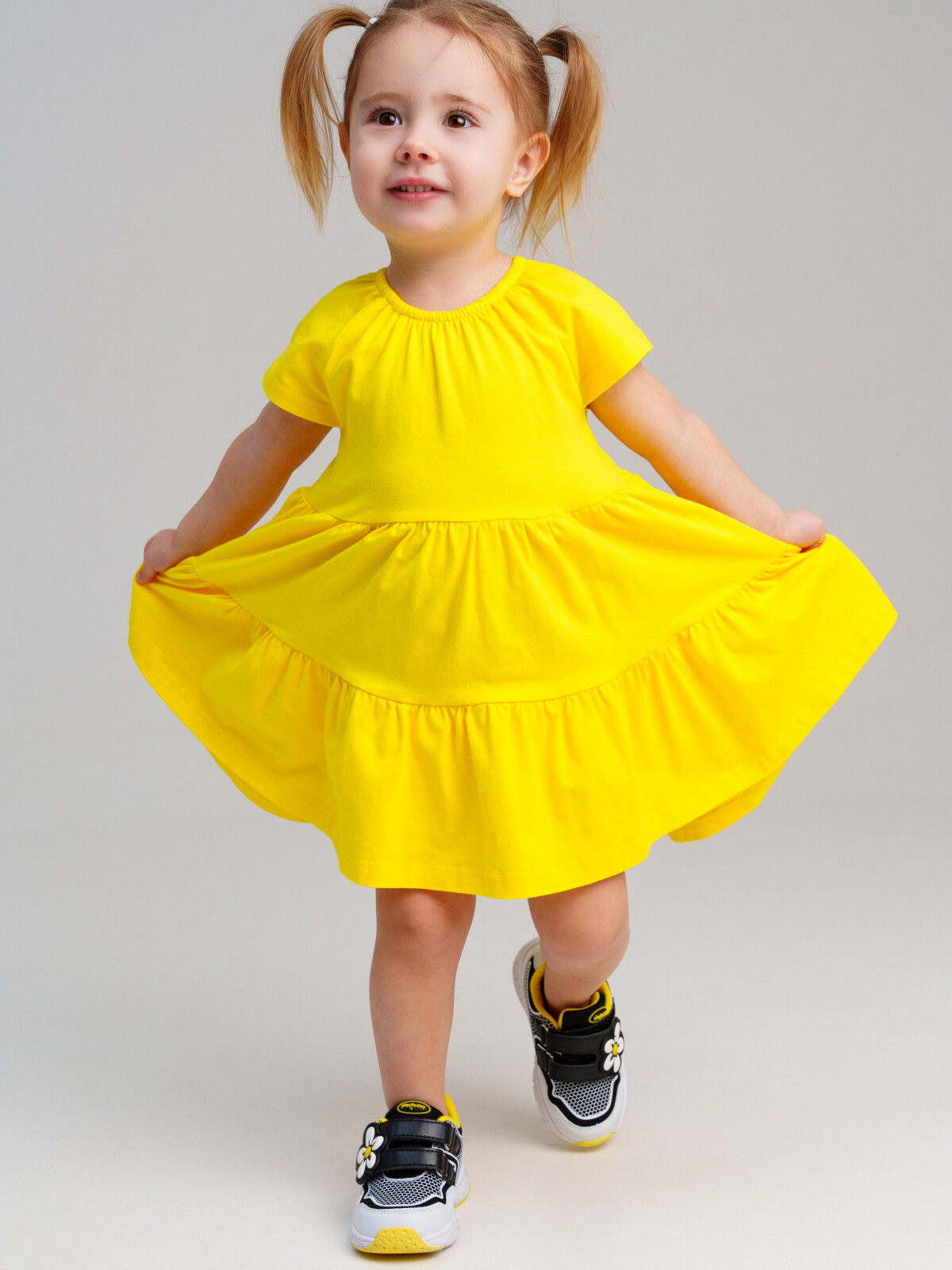 Платье детское для девочки. Модель с высоким содержанием хлопка. Благодаря наличию эластана в составе ткани изделие держит форму и меньше мнется. Модель выполнена из качественного и приятного на ощупь трикотажа.