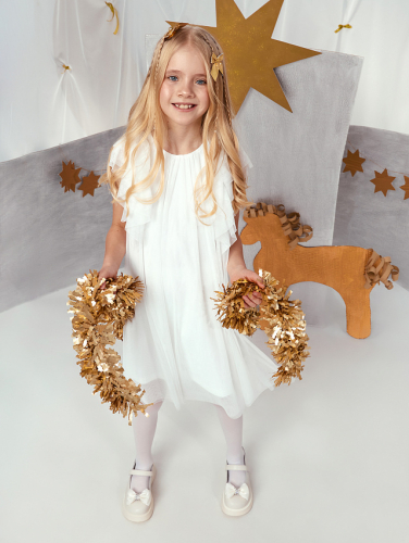 Практичный состав с преобладанием хлопка обеспечивает воздухообмен и мягкость. Платье подойдет для праздников, повседневной носки и особых мероприятий. Сочетание уютного верха и нарядного низа делает модель универсальной для любого сезона.